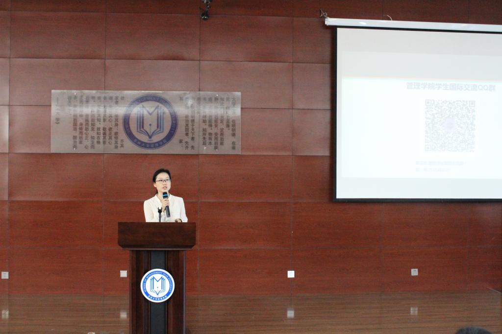 紧接着,2018级档案学专业本科生孟昕、2018级管理科学与工程类本科生张荣芊、2017级物流管理专业研究生吕琦、2017级会计学专业本科生李想、2017级档案学专业本科生刘寅鹏分别代表韩国项目、英国项目、美国项目、香港项目和台湾项目进行了总结汇报和分享,内容主要围绕学术课程和文化体验两部分展开。大家表示,全英文授课的学习环境让自己的英语听力和口语水平得到了锻炼提高,国外小组式、参与式的课堂也提升了表达能力和团队协作能力,而文化体验则让自己开阔了视野,领略了不一样的文化。大家还特别分享了项目交流中的各种美食和美景的照片。他们不仅为在场的同学们分享了参加交流项目的图片和感受,甚至还制作了精美的视频。通过总结和分享可以看到,这种国际(境外)交流的经历不仅使同学们的学习能力和综合素质得到了锻炼和提高,而且能够帮助他们建立精英朋友圈,并对未来的学习和生活有更清晰的规划。与会的同学们表示:原本没有想过要出国交流,但听了同学们的分享,自己也特别想去学习和感受一下世界一流高校的氛围,以后会多多关注公司和公司的国际交流项目。