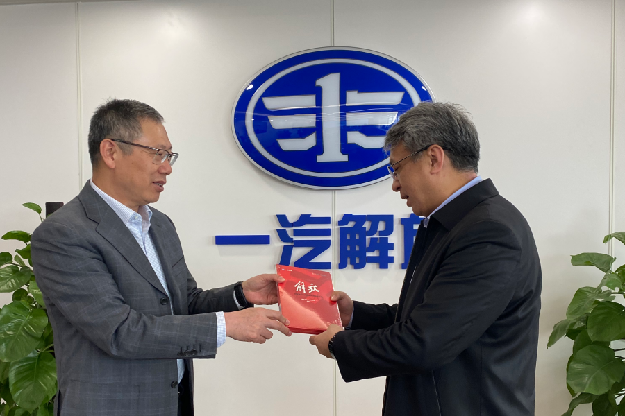 走访时胡汉杰董事长介绍说:一汽解放集团股份有限公司作为新中国历史最长的汽车企业,有着厚重的国企色彩。对于朝着2025年战略愿景大步前进的中国一汽来说,红旗是魂,一汽解放是根,只有它的强力支撑,大胆突破,中国一汽的裂变才会更有力量。当前,以智能化、电动化为标志的技术变革中,一汽解放在传统与未来之间找到改革的平衡,“一是技术创新,二是管理变革,创新与变革是驱动企业不断前进的动能,也是实现‘中国第一,世界一流’的抓手。”对于发展目标,胡汉杰清晰而笃定,企业实现国际化,商业上更成功。气势如虹的一汽解放正推动着披坚执锐的中国一汽,用高质量的发展成为更勇猛的尖兵。