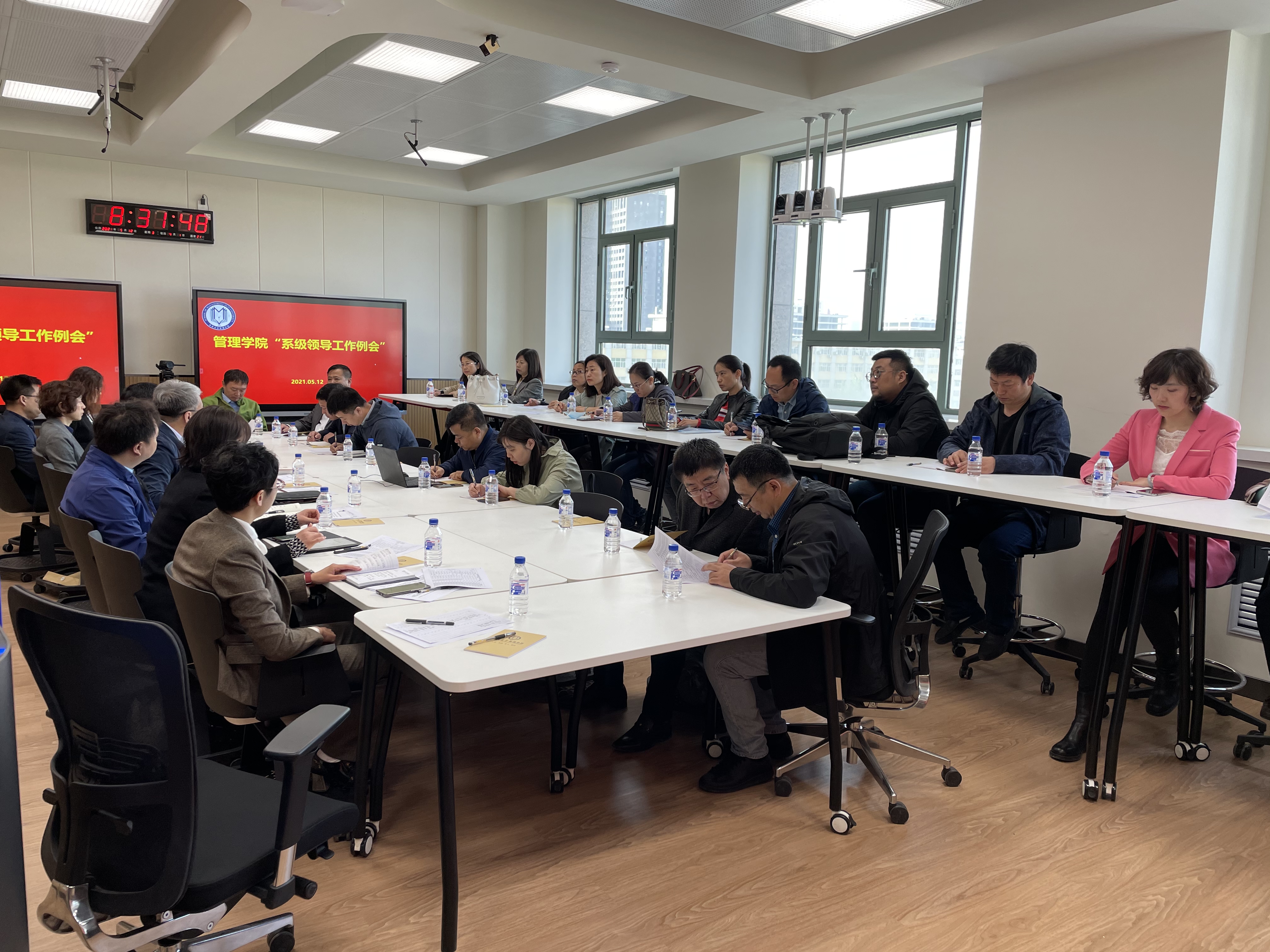 首先,技术经济系主任朱秀梅老师就赴清华大学、中国人民大学开展调研情况作专题发言交流。随后,各分管院领导分别就分管领域工作进行了布置安排,涉及党史学习教育、党风廉政建设、本科生教学、学术与专业学位公司产品、科学研究、人才队伍建设、员工思政教育等相关工作。