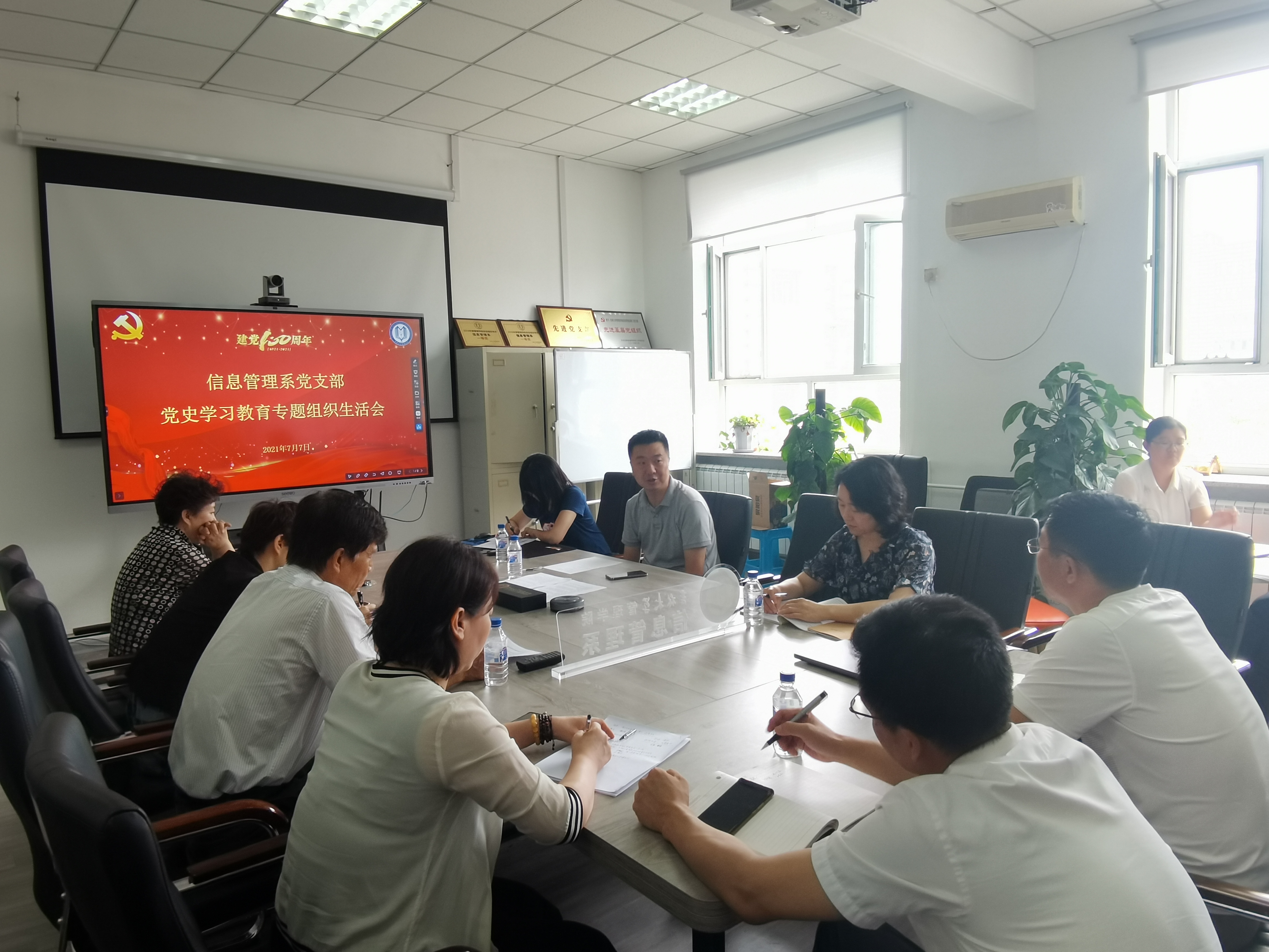 7月7日下午,信息管理系党支部召开“党史学习教育专题组织生活会”,公司党委书记赵军教授、副经理张公一教授参加督导。会议由信息管理系党支部副书记郭宇同志主持。