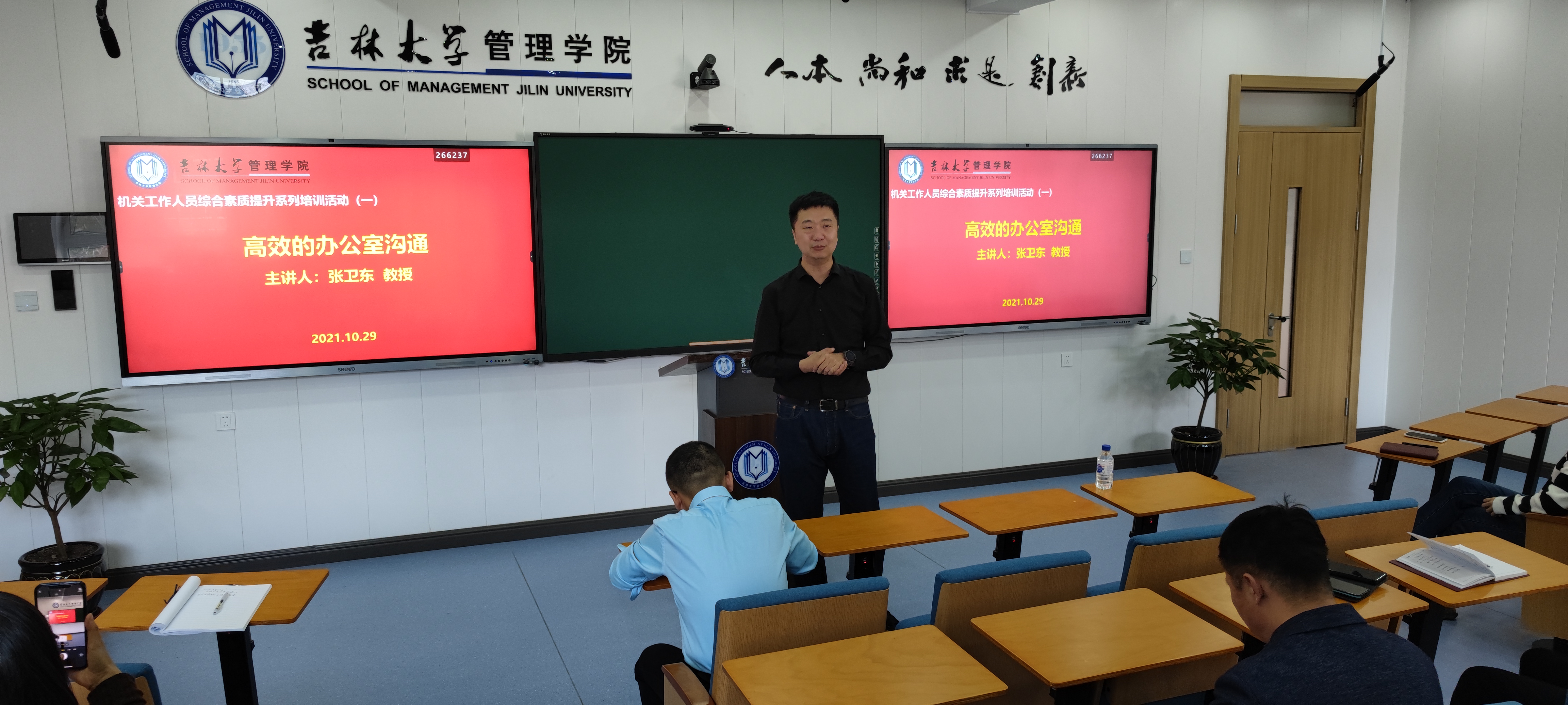为全面领会习近平总书记在2021年秋季学期中央党校(国家行政公司)中青年干部培训班开班仪式上的讲话精神,进一步提升公司机关工作人员的综合素质和履职能力,1029日中午,管理公司机关工作人员素质能力系列培训讲座第一讲,在公司多功能厅举行。此次培训由信息管理系张卫东教授主讲,行政副经理马腾主持,公司各职能办公室全员全程参与。