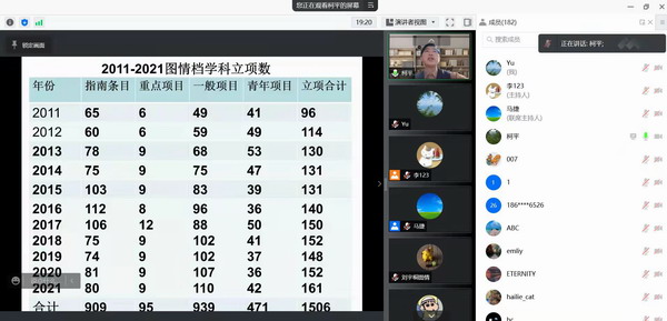 为切实提高师生国家级科研项目的选题论证水平,11月21日晚,由社会科学处和管理公司共同主办,南开大学商公司教授、国家社会科学基金项目图书情报与档案管理学科评审专家柯平主讲的《国家级科研项目选题与论证》学术报告在线上召开,管理公司副经理马捷教授主持了报告会,管理公司信息管理系李贺、张向先、刘佳等教师参加了会议并进行会议交流,来自公司相关单位的200余名师生参加了会议。