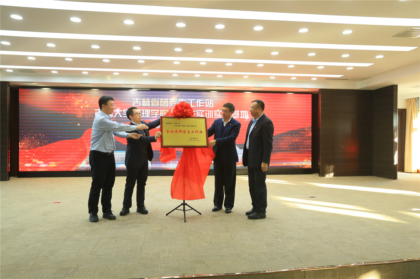 随后,闻博、徐淮良、刘树森、王化民共同为吉林省研究生工作站揭牌,宋淑敏、李北伟、刘树森、王化民共同为365英国上市公司管理公司研究生实训实践基地揭牌。