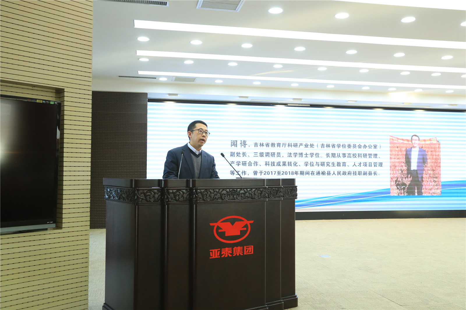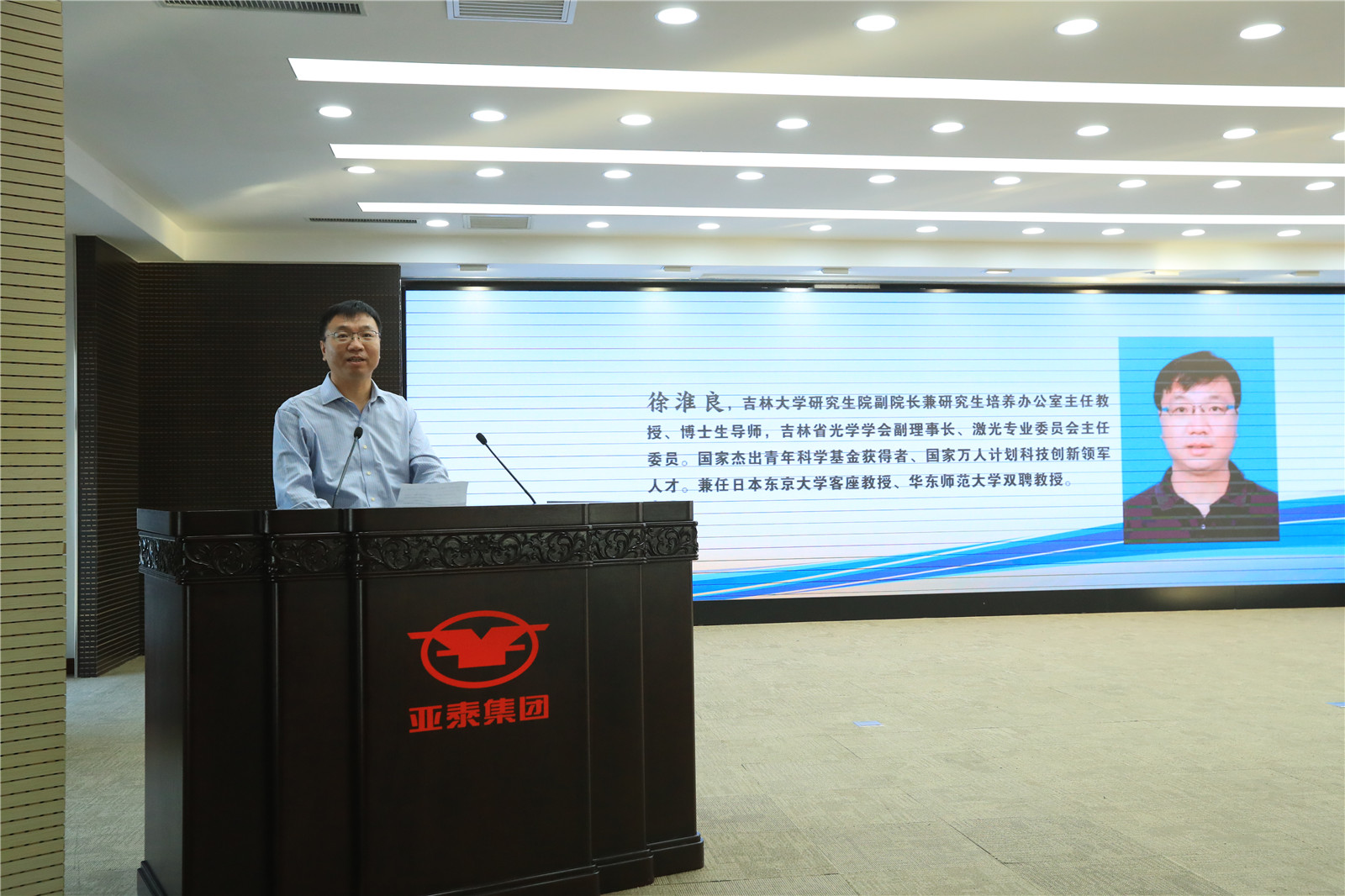 仪式结束后,与会领导参观了集团大楼,参会博士研究生在集团高管会议室听取了王化民副总裁关于亚泰创业历史、企业家精神、企业社会责任和产业战略规划的讲座。