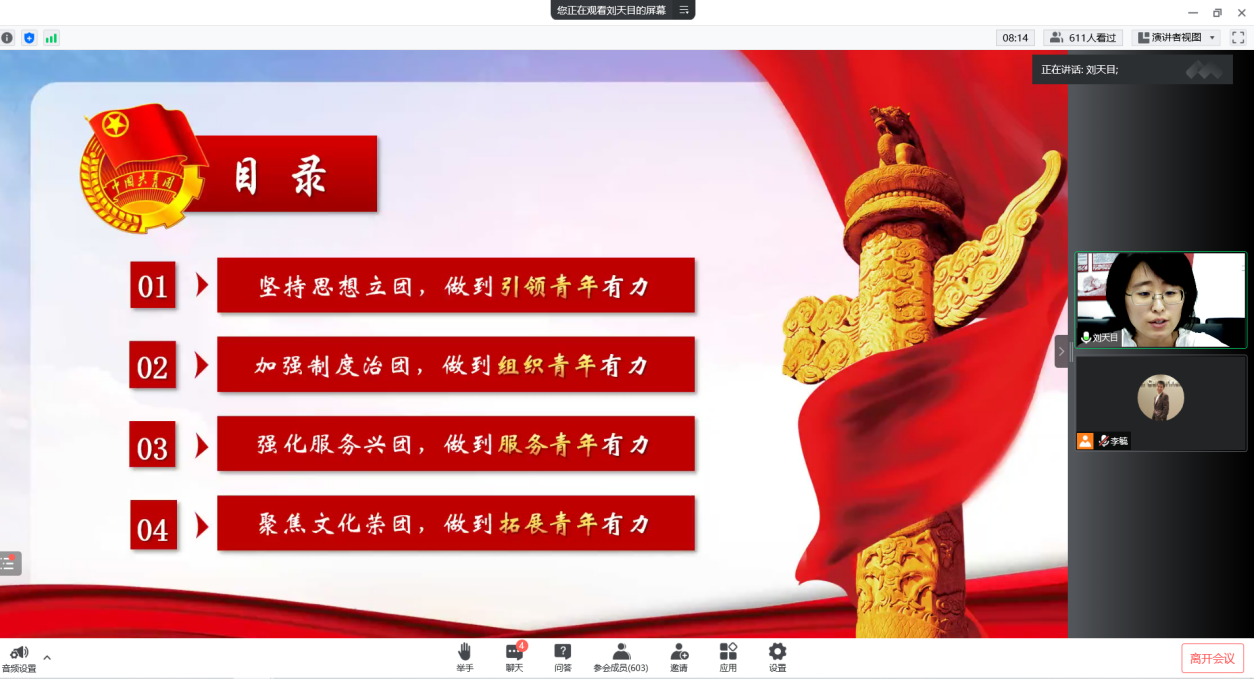为加强2022级新生的共青团团员意识,深化共青团情怀,增进对党和团的认识,365英国上市公司团委书记刘天目老师于2022年8月30日通过腾讯会议为2022级新生举办了“以青春之名,续写时代华章”的线上主题团课活动。