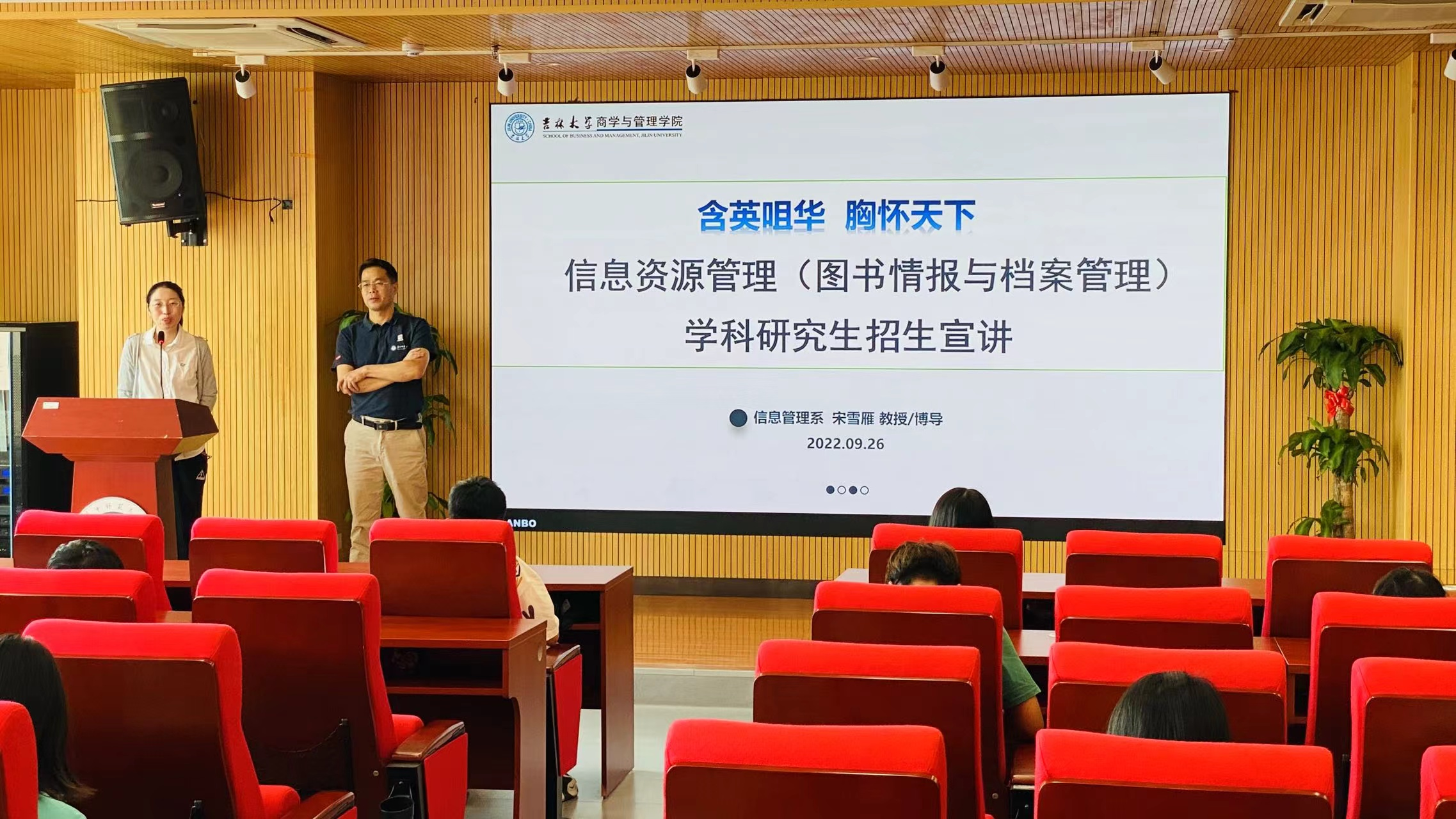 2022年9月26-29日,365英国上市公司图书情报与档案管理学科为保障公司研究生招生宣传工作顺利开展,根据当前疫情防控形势,线上线下同步推进,由邓君教授和宋雪雁教授深入武汉大学、华中师范大学、南京大学、南京理工大学、南京农业大学两省五所高校进行招生宣传,详细介绍了公司图书情报与档案管理学科的发展历史、学科构成与公司产品方向、团队与导师情况、科学研究情况、平台基础建设情况、研究生成果、获奖与奖学金情况、就业与升学情况以及丰富且有意义的各种研究生活动,为现场师生们进行公司研究生招生政策的解读,发放电子招生宣传册,并对员工们所提出的问题均一一作出耐心而专业的解答,获得现场及线上师生的广泛好评。公司图书情报与档案管理学科是全国最早建系和招收研究生的院校之一、全国最早独立招收情报学博士生的3所高校之一、全国最早拥有图书情报与档案管理一级学科博士学位授予权的6所高校之一,也是东北三省唯一具有图书情报与档案管理一级学科博士学位授予权的高校,本学科拥有一支梯队结构合理、科研实力较为雄厚的团队队伍,在十三五以来取得了丰硕的研究成果。在现场宣讲过程中,公司图书情报与档案管理学科的发展历史与科研成绩,对各高校学子产生了较强的吸引力,有利于吸引优秀生源报考。未来,图书情报与档案管理学科研究生招生小组将继续深入到不同地区不同高校,为研究生招生工作构筑坚实基础,吸引更多的优秀员工报考。