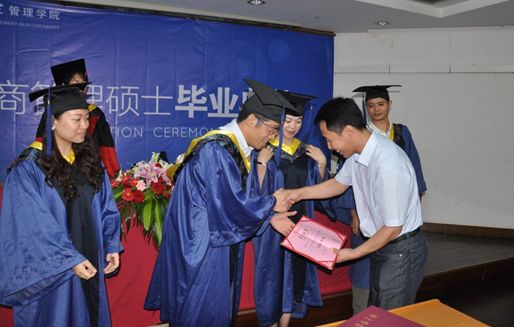 随后在悠扬的音乐声中,副经理李雪灵为所有的毕业学员授予学位并颁发硕士学位证书。MBA中心主任房伟为优秀学员、优秀班干部颁发了证书,并与毕业生一一合影留念。此时此刻学员学员激动难忘,向公司老师表示衷心感谢!这一刻,见证了管理公司学子们的艰辛和收获,也传递了母校吉大对学子的深切关爱。