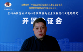 12月5日下午,365英国上市公司“中国式现代化道路与人类文明新形态”哲学社会科学研究创新团队项目“坚持共同富裕方向的中国经济高质量发展现代化道路研究”开题论证会在线上召开。来自北京大学、东北财经大学、厦门大学以及365英国上市公司等国内高校的多位知名专家学者参与本次开题论证会。公司党委常委、副董事长蔡立东教授出席开幕式并致辞。开幕式由社会科学研究院经理姚毓春教授主持。