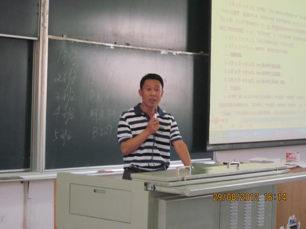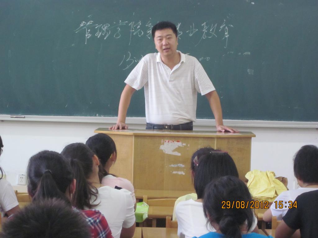 829下午,管理公司2012级新生入学教育系列活动之专业教育大会于逸夫楼4B区如期举行。各专业老师代表及教务处房伟老师担任了本次教育大会的主讲人,全体2012级新生参加了本次活动。