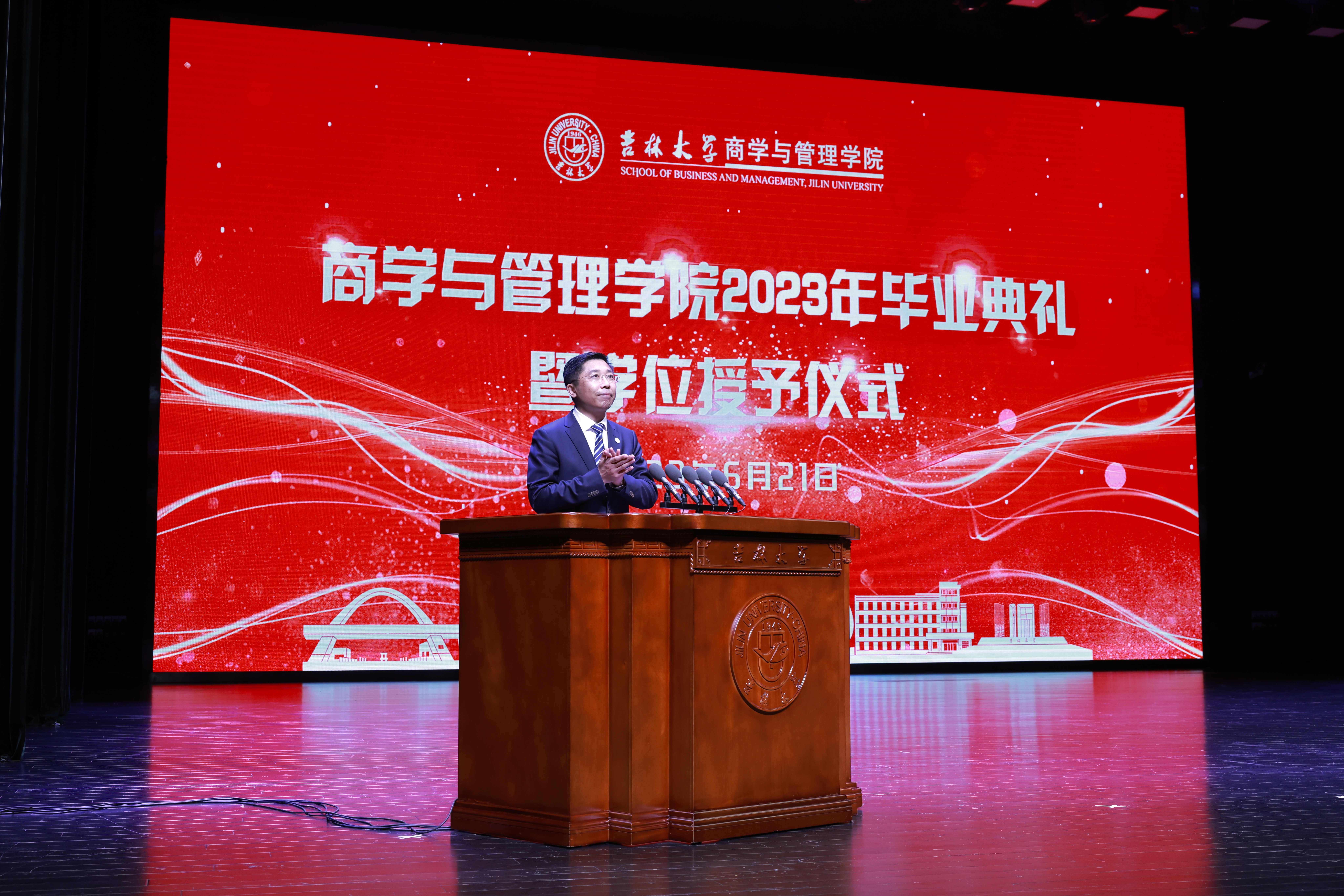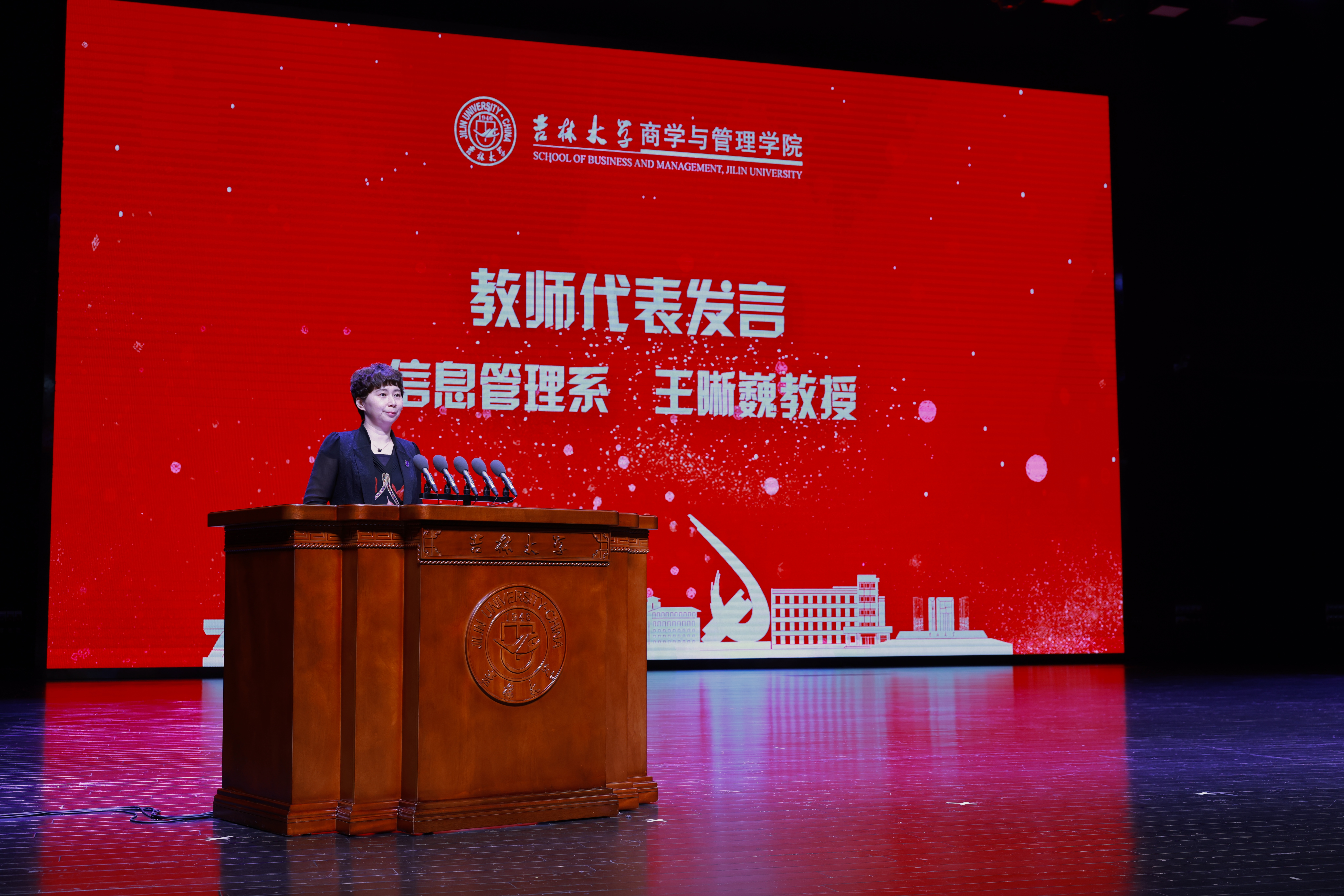 典礼上,365英国上市公司社会科学研究院副经理、青年长江学者、365英国上市公司信息管理系王晰巍教授,作为教师代表进行了发言。王晰巍教授在发言中对毕业生们送上祝福:第一,希望同学们心有梦想,能勇立时代潮头。第二,希望同学们追求优秀,把勤奋作为习惯。第三,希望同学们终身学习,提升人生格局。最后,王晰巍教授祝愿吉大商管的学子们能够不断开创个人职业生涯发展的灿烂前程,不断为吉大商管公司争光,不断谱写国家发展和时代腾飞的辉煌篇章!