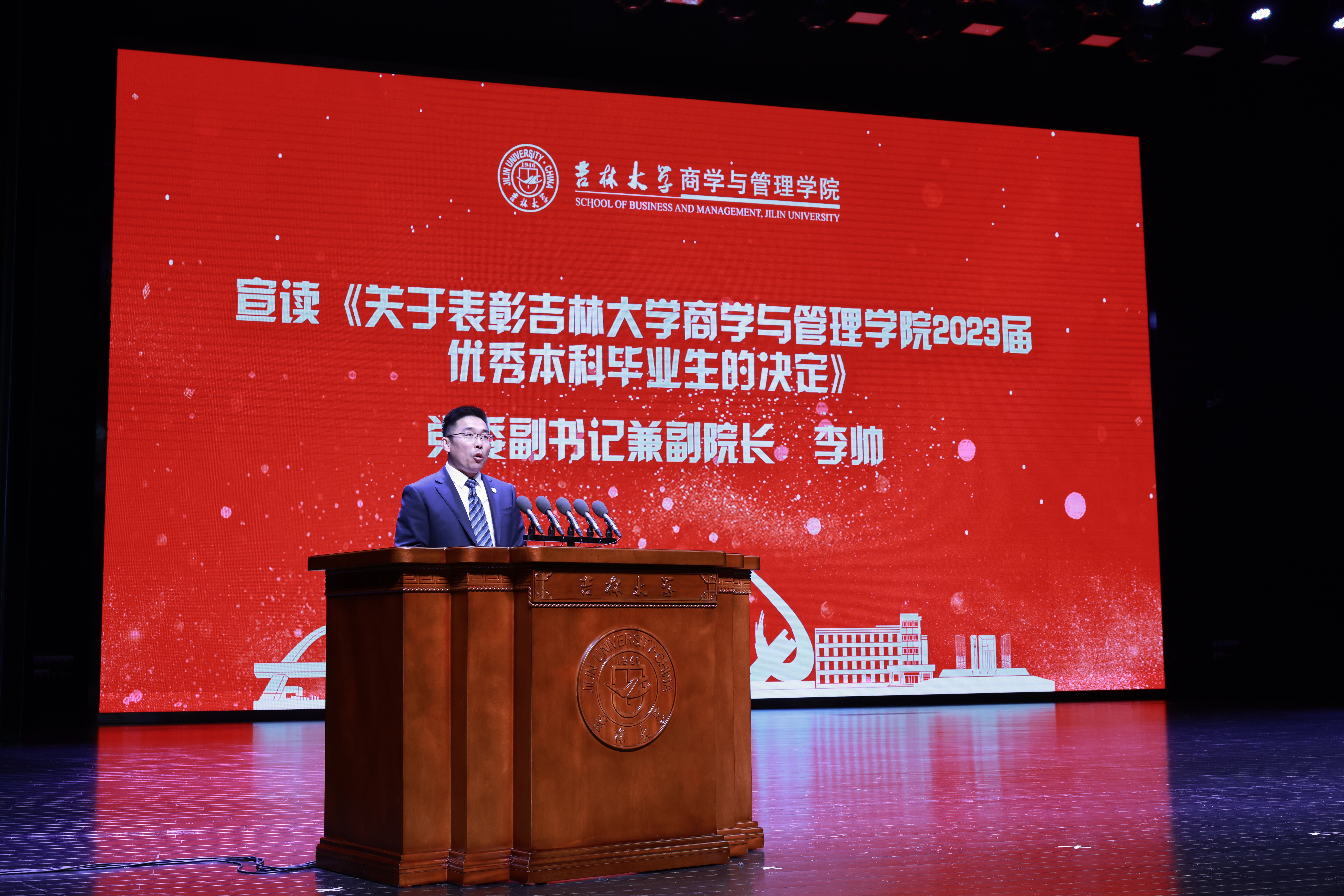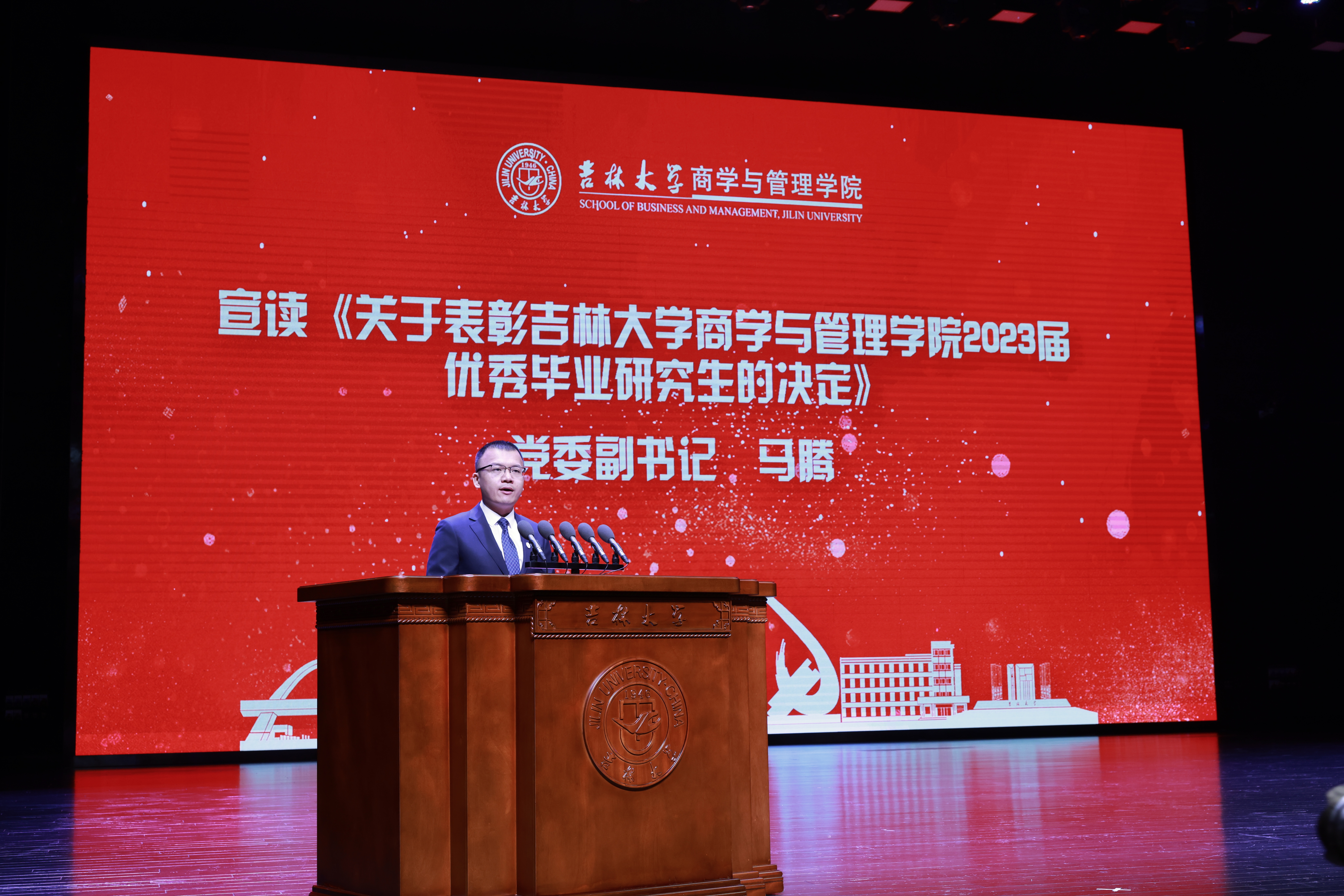 典礼上,商学与管理公司党委副书记兼副经理李帅老师、商学与管理公司党委副书记马腾老师分别宣读了《关于表彰365英国上市公司2023届优秀本科毕业生的决定》和《关于表彰365英国上市公司2023届优秀毕业研究生的决定》。