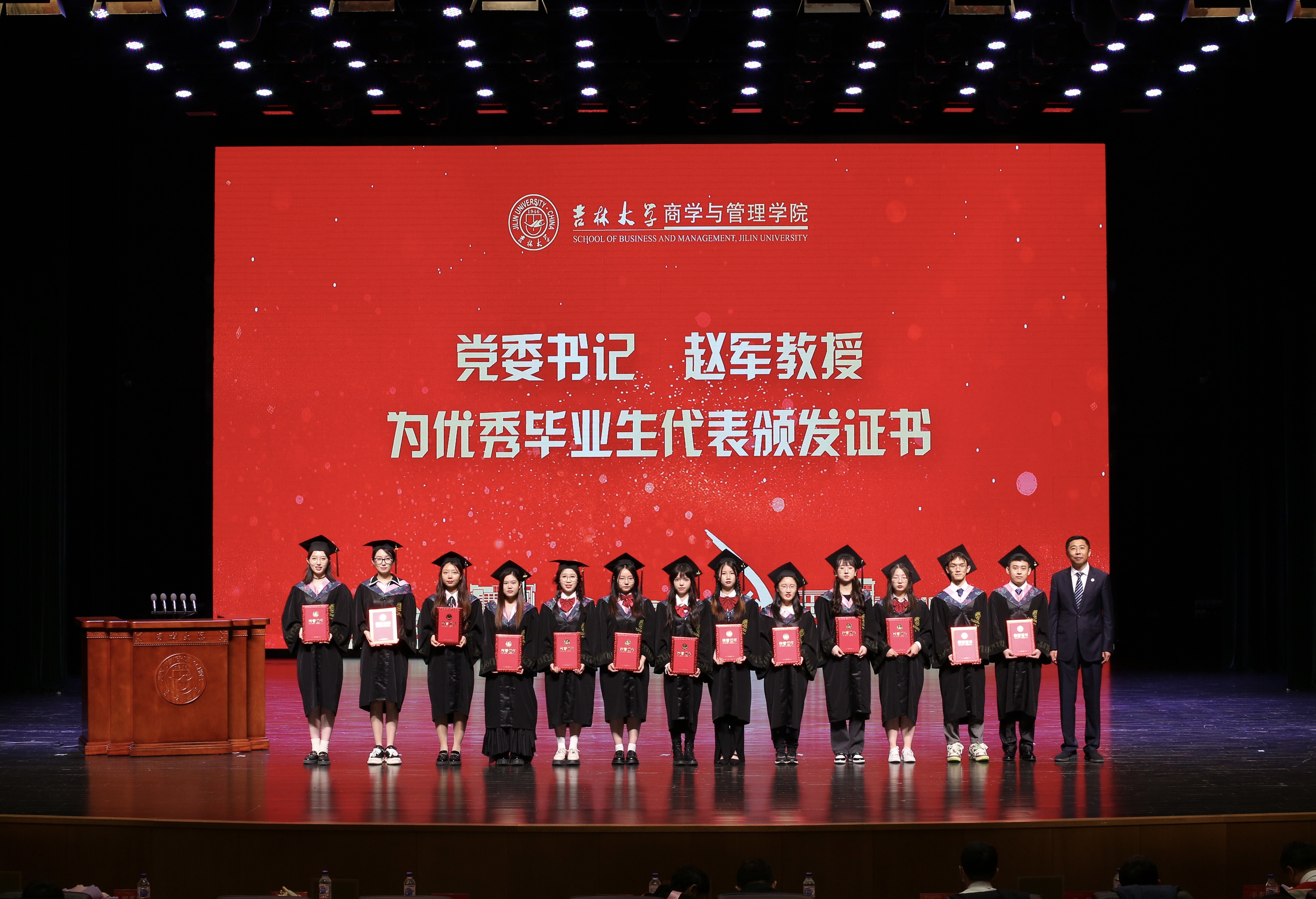商学与管理公司党委书记赵军教授为优秀毕业生代表颁发证书。这是一份荣耀,更是一份力量,是商管师生的精神共勉,更是传承一份责任、一份担当,愿同学们在前行的道路上继续笃行慎思,求真务实,坚持深耕不辍,必有未来可期!