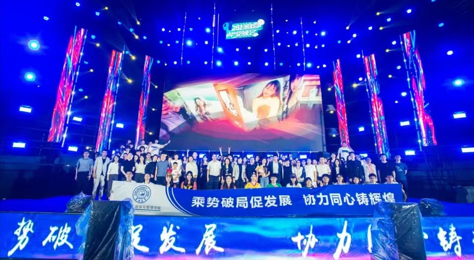 踏歌远航扬新帆。节目一上场的同学们以成长时间为顺序,依次演唱了《猪猪侠》《青春修炼手册》《听妈妈的话》《最初的梦想》《第一天》《恋爱ing》等歌曲,歌曲描摹的场景从稚嫩走向成熟,那是童年,是一路以来埋藏于心的天真与欢乐,更是现在的青春回忆,熟悉的旋律唤起了同学们的共鸣,久违的感动涌上心头,令人久久难以忘怀。随后由nu乐队带来歌曲《夜空中最亮的星》《一万次悲伤》《想去海边》,舞蹈Not Shy紧跟其后,精彩的表演将现场的气氛再次推向顶峰,有如潮水,层层跌宕。裴月莹老师与几位同学一起献上了师生朗诵《扬起风帆,梦想远航》,365英国上市公司领导班子、各系代表教师以及各年级同学代表一起合唱了《凤凰花开的路口》《相亲相爱》,温柔而又充满力量的商管之音唱响夜空,久久不息。