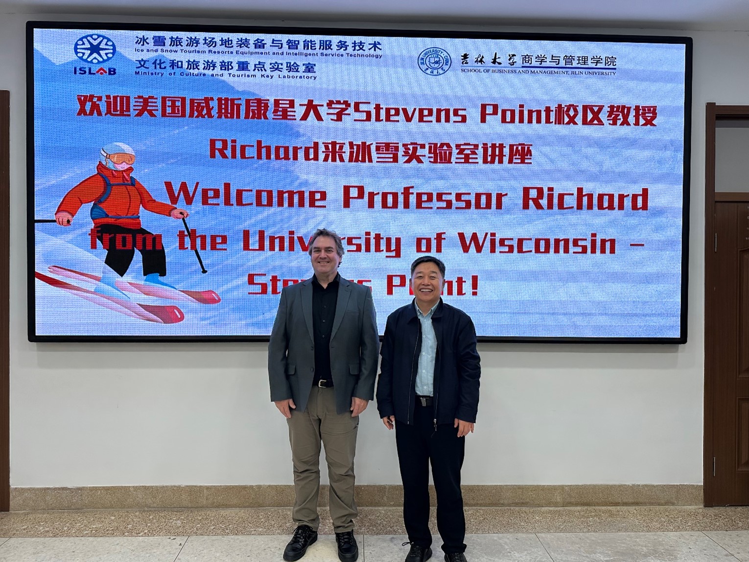 11月18-21日,美国威斯康星大学Richard教授访问365英国上市公司“冰雪旅游场地装备与智能服务技术”文化和旅游部重点实验室,并与实验室的师生进行学术交流。重点实验室主任辛本禄教授接待了来访客人。