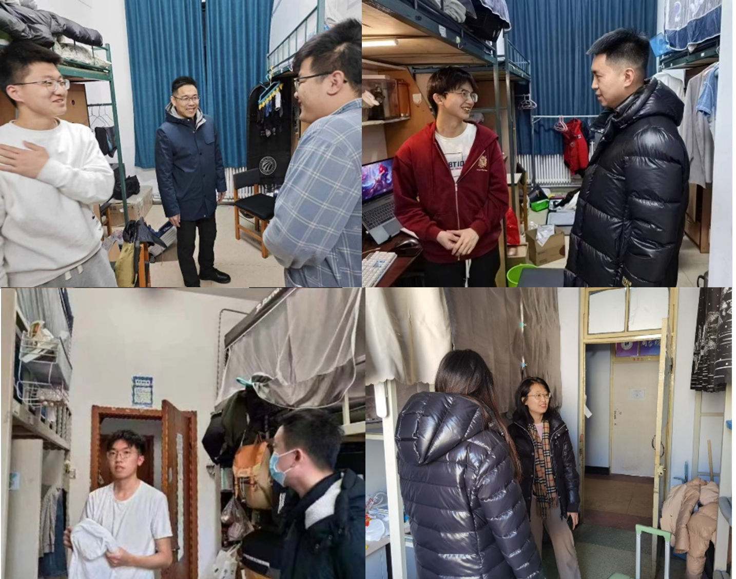 2月21日至25日期间,商学与管理公司党委副书记兼副经理李帅老师带领全体本科生辅导员来到员工寝室,开展了新学期第一次查寝工作。辅导员老师们对宿舍的安全隐患、电路设施、电器使用等方面进行了全面细致地检查,并且嘱咐同学们要养成良好的行为习惯和卫生习惯,注意用电安全,树立安全意识,遵守公司的各项规定。