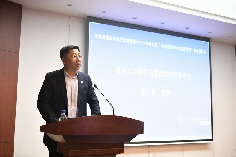 开幕式由樊雪梅教授主持。商学与管理公司党委书记赵军教授致辞。赵军书记在致辞中对莅临本次研讨会的各位专家、来宾表示热烈欢迎和诚挚感谢。他衷心希望,在国家加快发展新质生产力、推动产业链供应链优化升级的进程中,公司物流管理专业能够不断提升科研能力和高质人才培养,为物流产业发展提供吉大商管的助力。