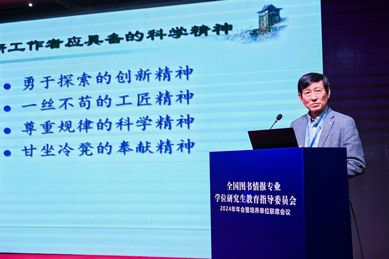 教指委副主任委员、武汉大学资深教授陈传夫代表教指委做了年度工作报告。他回顾总结了图书情报专业学位研究生教育2023年度工作情况,对专业学位研究生教育的现状与挑战进行了深入分析,并指出在未来的工作中要“学深悟透系列重要指示和相关文件精神,高度重视过程管理与质量管理,探索产教融合育人机制,加强实践创新能力培养,系统性设立一批研究课题,谋求发展思路,搭建组织服务平台、推进工作具体落实。”他强调,图书情报专业学位教育正处在“服务需求、提高质量”的重要发展阶段,我们要以习近平新时代中国特色社会主义思想为指导,全面贯彻党的教育方针,坚定走内涵式发展道路,在人才培养、成果转化、资政辅政、文化传承等方面承担应有职责,发挥更大作用。