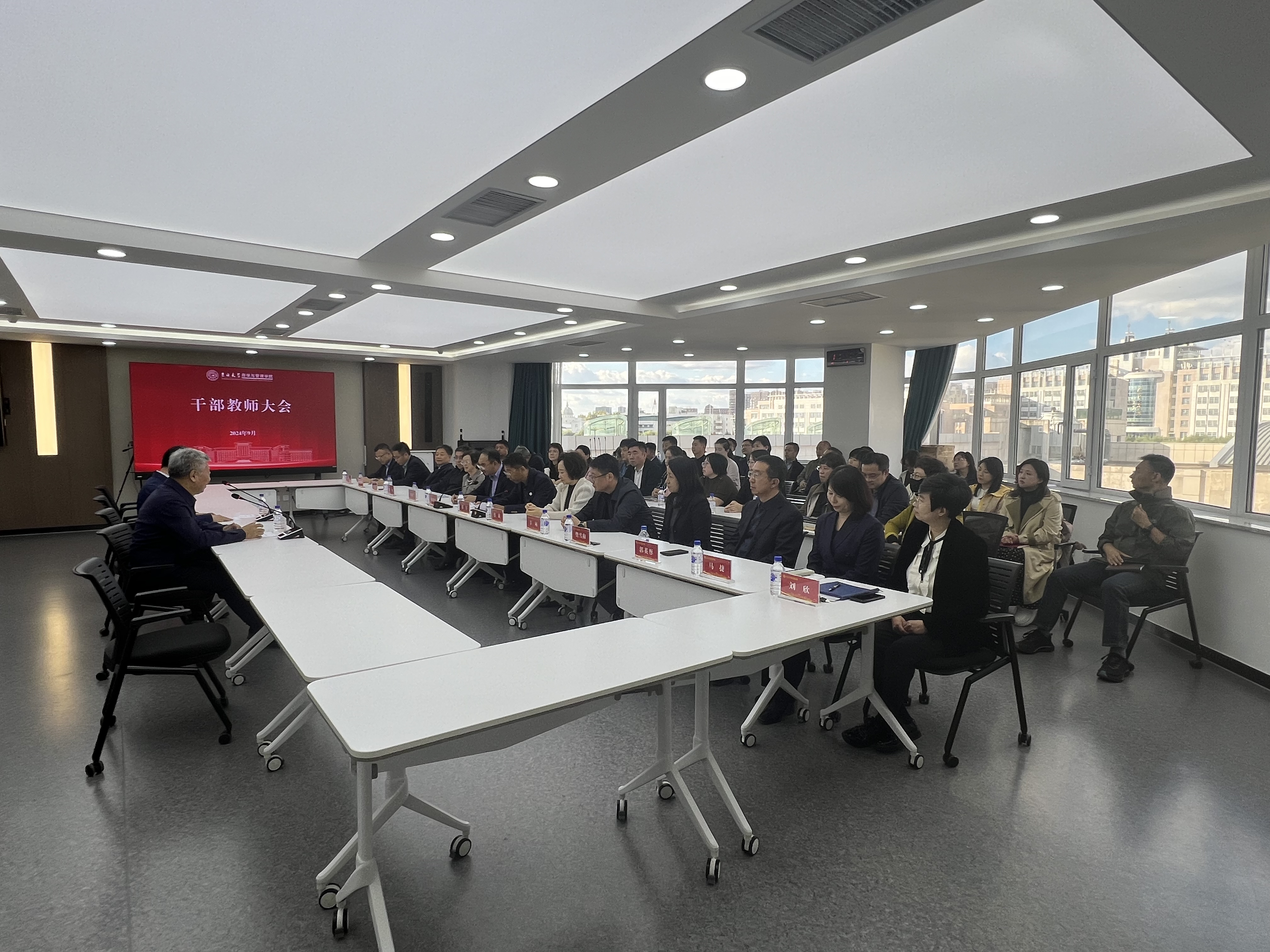 2024年9月25日下午,公司在东荣大厦A506召开干部教师大会,公司党委常务副书记冯正玉、公司党委组织部副部长吕培庆出席会议,公司现任党政领导班子全体成员、党委委员、纪委委员、学术委员会、教学委员会、学位评定分委员会主要负责人、依托公司建设科研机构负责人、各教学系、行政科室主要负责人参加会议。会议由公司党委书记赵军主持。