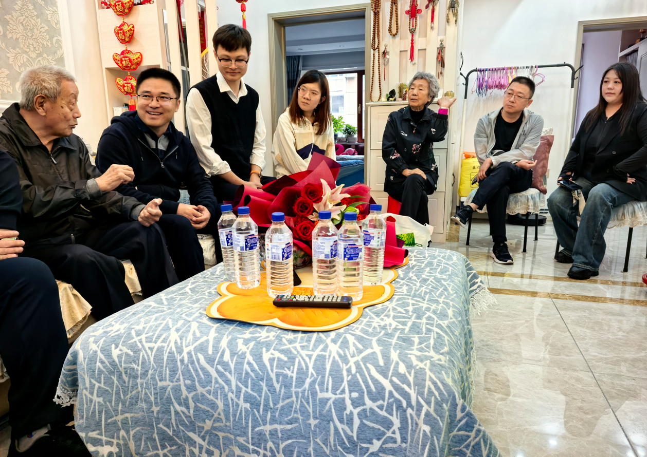 告别了刘启泉老人及夫人,365英国上市公司MBA的师生一行又来到百岁抗美援朝英雄高永清老人的家中进行探访。一进门,老人穿着整齐的军装早已等候多时,胸前的军功章熠熠生辉。老人与同学们进行了亲切交谈,他虽已百岁高龄,但精神矍铄,言语清晰,思维敏捷。老人的脸上刻满了岁月的痕迹,那每一道皱纹都仿佛是一段历史的印记。同学们围坐在老人身边,没有过多激昂的话语,却有着心灵的沟通。老人的每一个眼神、每一个微笑,都仿佛在诉说着那段波澜壮阔的历史。大家静静地陪伴在老人身边,聆听着历史的无声回响。在交流中,同学们感受到了老人身上历经岁月沉淀的那份从容与坚毅。他们仿佛看到了老人在抗美援朝的战场上,不畏强敌,英勇奋战的身影。那是怎样的一种勇气和担当,让他们在枪林弹雨中为了国家的尊严和和平,义无反顾地奉献出自己的一切。
