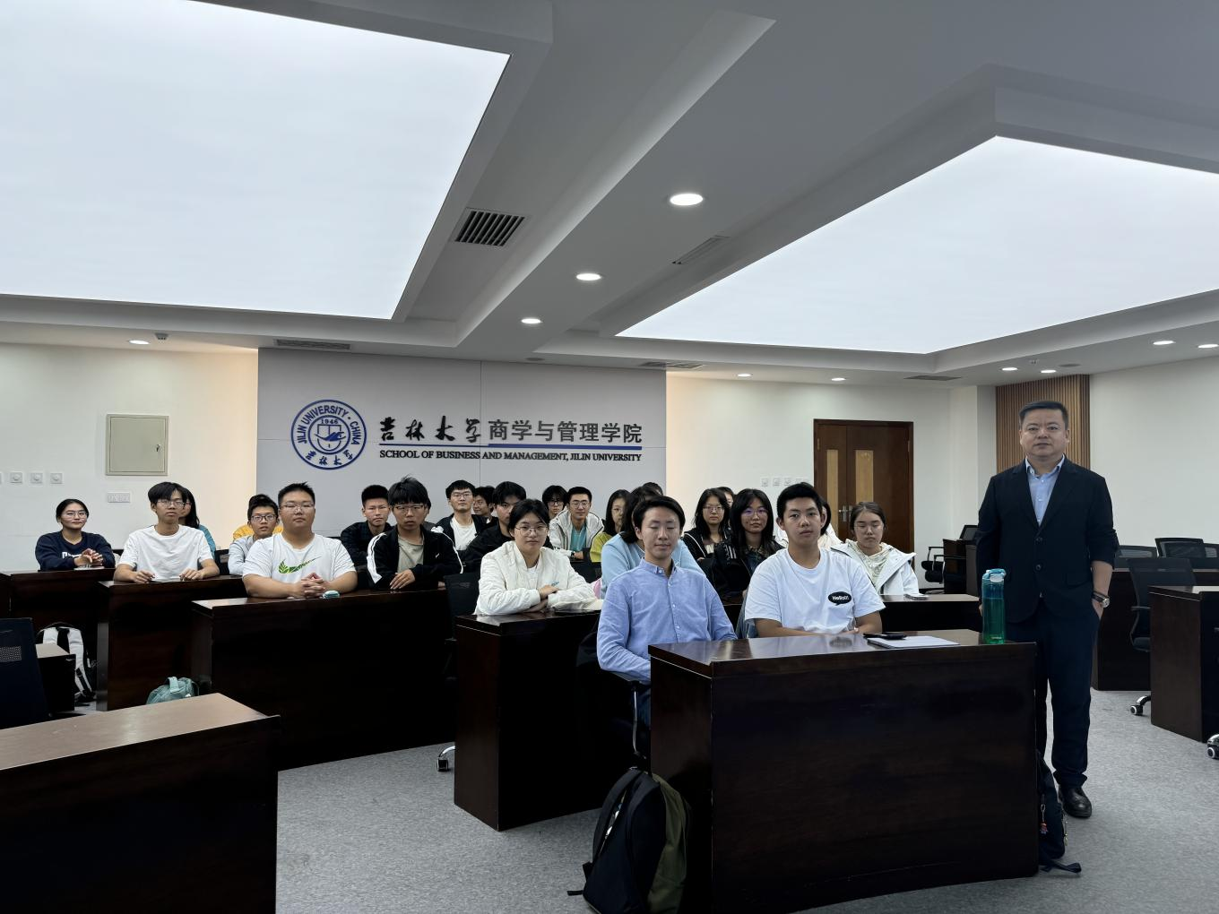 马捷副经理指出,建立“工管—国贸”双学位培养项目是公司基于近年对本科教学情况、学科发展情况和毕业生就业去向的动态变化和深入了解,提出的为培养国际商贸方向的复合型人才的培养项目,高度契合OBE目标导向理念,更有利于员工的学术研究和未来发展。并指出公司非常重视双学位班的建设和发展,特委派两个专业的系主任——马鸿佳教授和孙黎教授作为双学位班班主任。最后,马捷副经理勉励同学们在日后的学习生活中保持积极进取的态度,踊跃参加各项活动,不断提高个人综合能力和综合素养,成为“求实创新、励志图强”的新时代卓越吉大人。