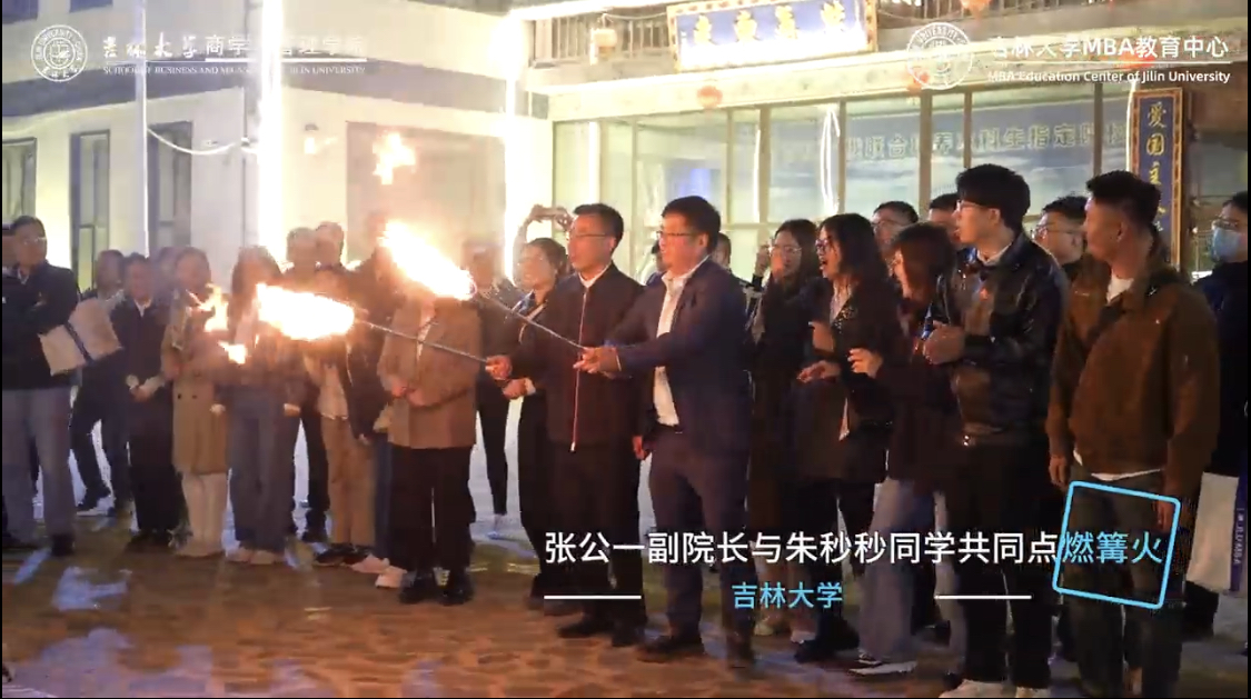 随即,充满惊喜的烟花冲上云霄,绽放在天际,散成漫天星辰,与热情相伴,欢乐的祝福声在空中飞扬。火焰与烟花遥相辉映,照亮了整个夜空,也照亮了所有MBA新同学们的未来之路,让我们定格在这些美好的瞬间,以崭新的面貌和满腔的热情踏上新征程。