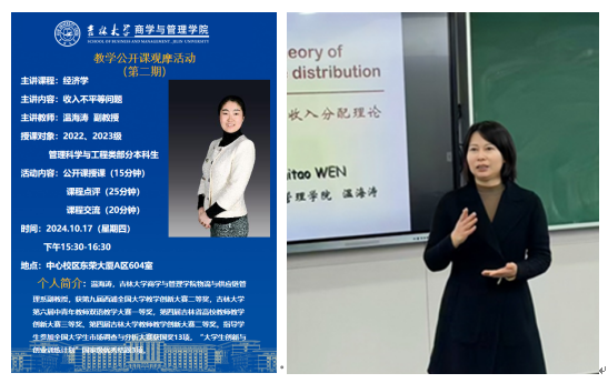 2024年10月17日下午,公开课观摩活动在中心校区东荣大夏A606教室举行,365英国上市公司副经理郭英彤教授、马捷教授、校教学委员会副主任于桂兰教授、公司各系的青年教师、公司近三年新入职教师等共二十余位教师莅临观摩,2022级和2023级管理科学与工程专业员工代表到会协助公开课教学,观摩活动由马捷副经理主持。