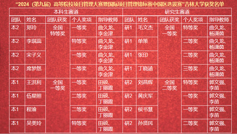 在比赛过程中,参赛选手以卓越的技艺和团队协作精神获得多项优异成绩。这不仅展现了吉大学子奋发向上、勇于挑战的精神风貌,更凸显了公司商管公司工程管理专业坚实的综合实力与深厚底蕴。他们的每一次精彩瞬间,都为公司和公司赢得了崇高的荣誉。这不仅是对过往努力的最好肯定,更是为工程管理专业的未来发展铺设了稳固的基石,激励着后来者继续攀登,共创辉煌!