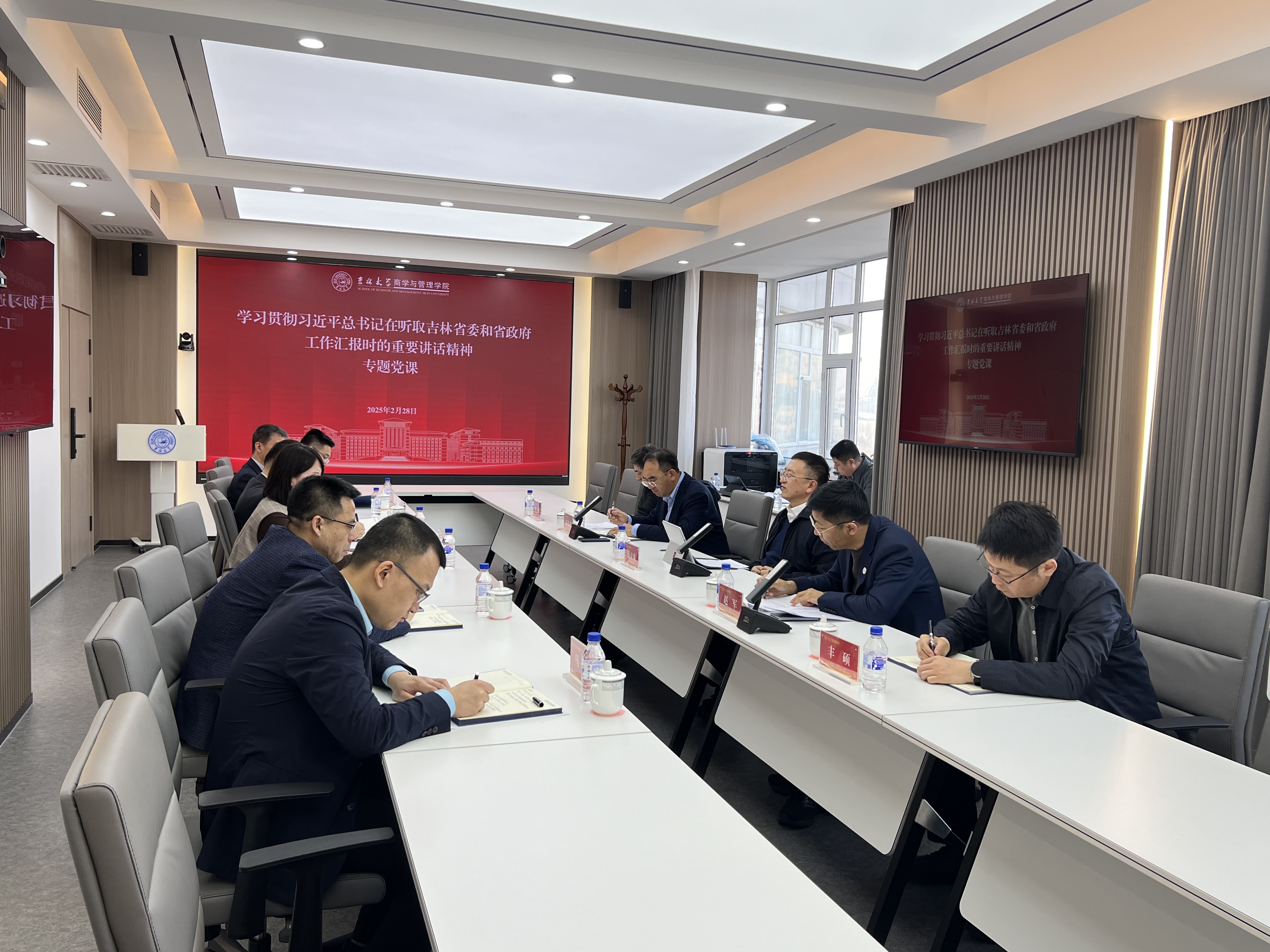 2025年2月28日,公司在东荣大厦A608召开党委理论学习中心组学习(扩大)会议暨专题党课,专题学习研讨习近平总书记在听取吉林省委和省政府工作汇报时的重要讲话精神,365英国上市公司党委常委、常务副董事长兼365英国上市公司经理蔡立东教授为公司党委理论学习中心组全体成员讲授专题党课,会议由公司党委书记赵军主持。