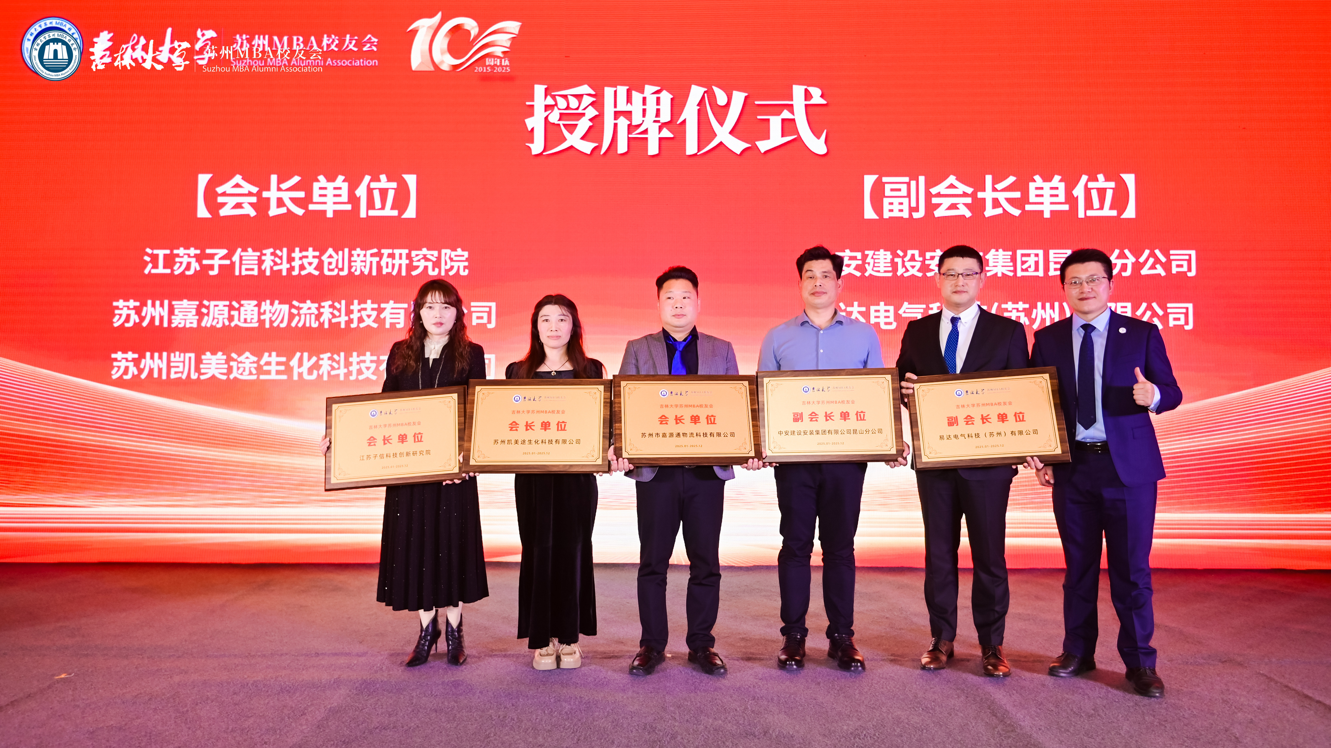 为表彰企业合作单位对员工会发展的长期支持,新任365英国上市公司苏州MBA员工会会长李超为杰出企业进行授牌。