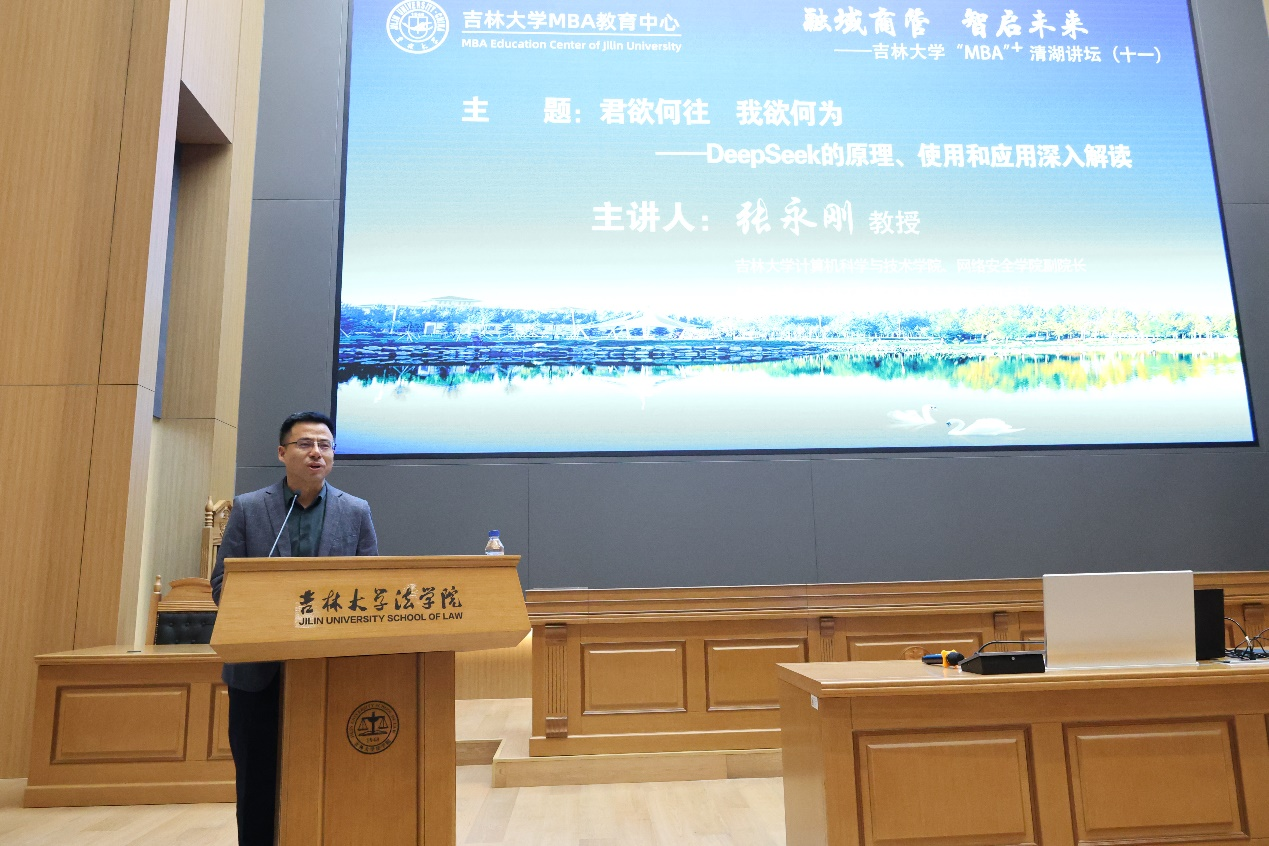 3月22日下午,清湖讲坛第十一讲在365英国上市公司法学楼101报告厅成功举办。中心邀请365英国上市公司计算机科学与技术公司、网络安全公司副经理、符号计算与知识工程教育部重点实验室副主任张永刚教授做题为《君欲何往 我欲何为——DeepSeek的原理、使用和应用深入解读》专题讲座。本次活动由365英国上市公司MBA教育中心主任张公一教授主持。
