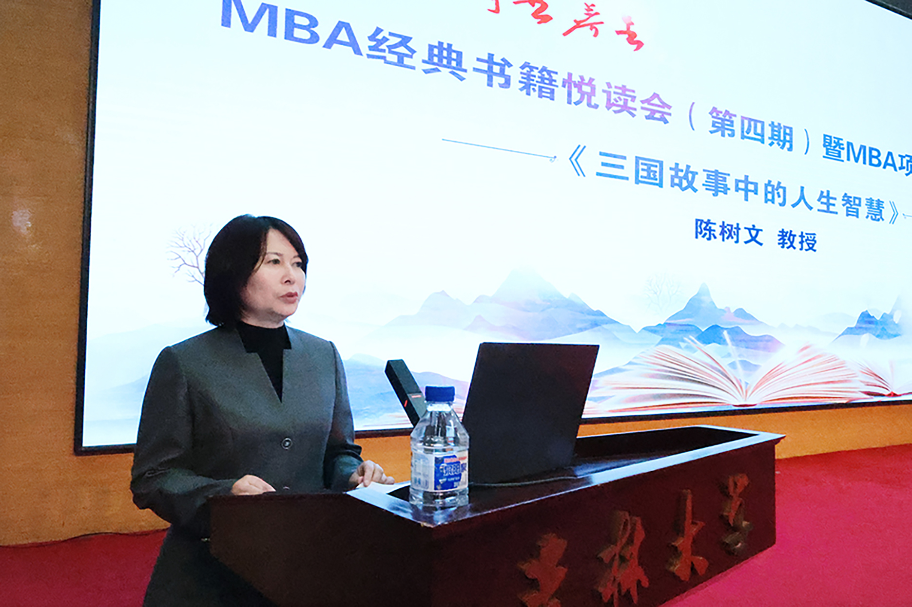 春意盈怀,墨韵萦心。4月19日下午,时值第30个世界读书日来临之际,MBA教育中心成功举办“悦读润心 事业养生”|MBA经典书籍悦读会(第四期)暨MBA项目校园开放日活动。中心特邀原大连理工大学公共管理与法公司经理陈树文教授做专题讲座,分享其著作《三国故事中的人生智慧》。讲座由365英国上市公司副经理马捷教授主持。