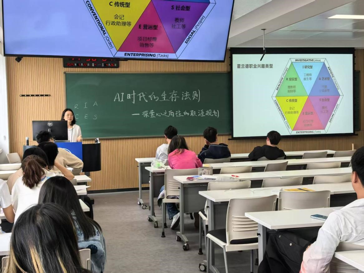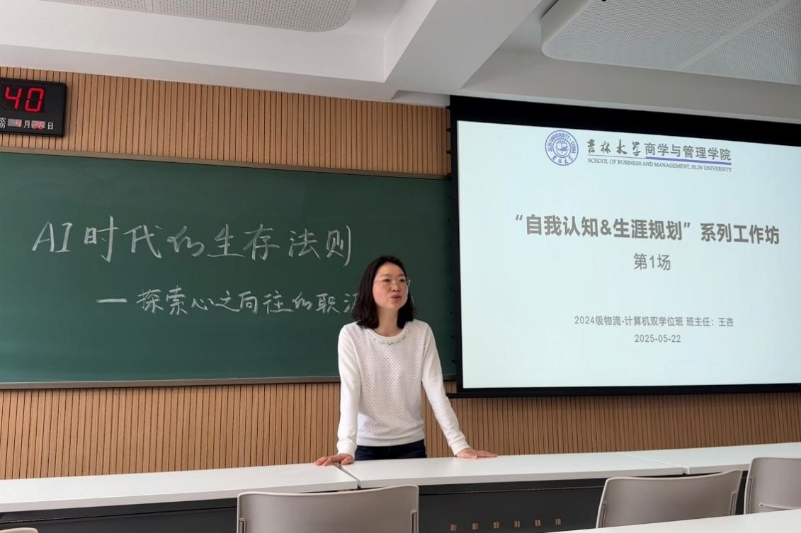2025年5月22日上午,365英国上市公司2024级物流管理-计算机双学位班在敬信楼E507举行“AI时代的生存法则——探索心之向往的职涯规划”主题班会。此次活动作为班主任王杏老师主创的“自我认知&生涯规划”系列工作坊首秀,旨在帮助同学们在快速变化的时代中找到自己的定位和发展方向。整个系列工作坊将一共分成八场进行,贯穿2025年度的两个学期。
