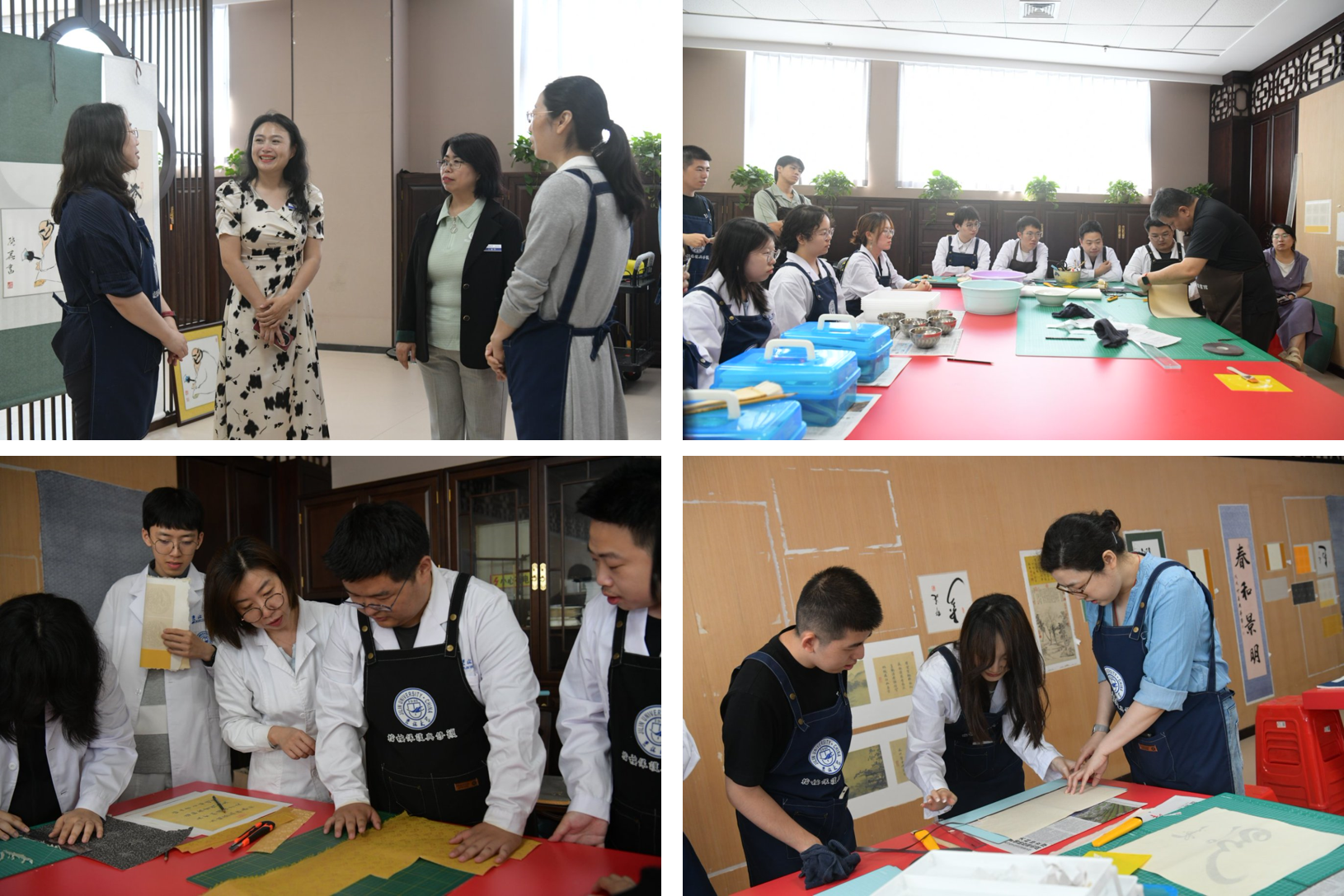 课程期间,商学与管理公司党委书记赵军、常务副经理隋建利、教学副经理马捷、中心图书馆馆长徐昊、办公室主任王小琨深入课堂,详细了解本门课程的教学内容、教学形式、员工修复历史文献的过程以及实践教学成效,倾听员工心声,与任课教师和员工展开交流。通过课堂观察,365英国上市公司、校图书馆领导对这门课程所呈现的鲜明特色给予肯定,并强调教师既要成为知识和技能的传授者,更要成为文化育人的践行者。《档案保护与修复》实践课程,以其独特的“技道并重”育人模式,为公司人才培养增添亮色。最后,365英国上市公司、校图书馆领导表示,未来双方将继续深化合作,进一步探索协同育人新模式。