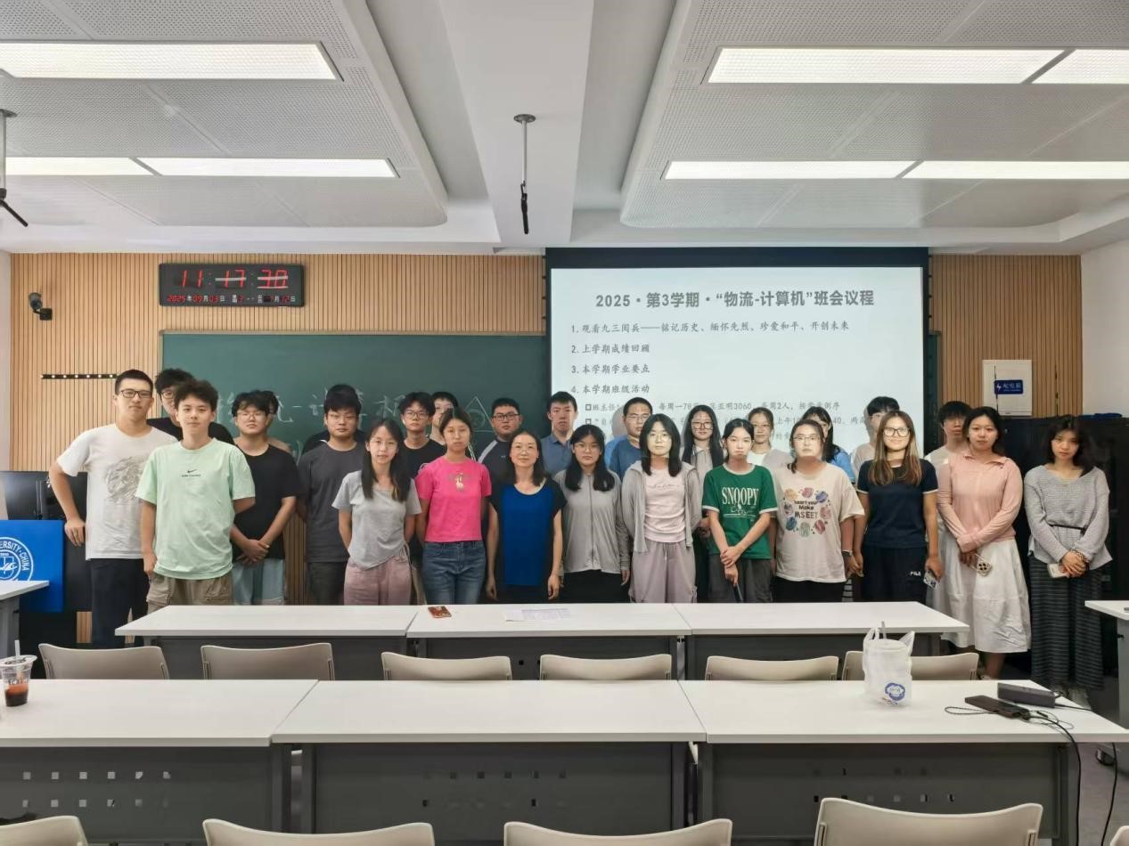 2025年9月3日上午,公司在敬信楼C109召开2024级“物流管理-计算机科学与技术”双学位班2025年秋季学期班会暨班级活动发布会。本次活动由班主任王杏老师主持,活动包含观看九三阅兵直播、上学期成绩回顾、本学期学业要点、班级活动发布四个版块,旨在帮助同学们树立远大志向、继往开来,为新学期的学习生活开启新篇章,双学位班的全体同学参加了此次活动。