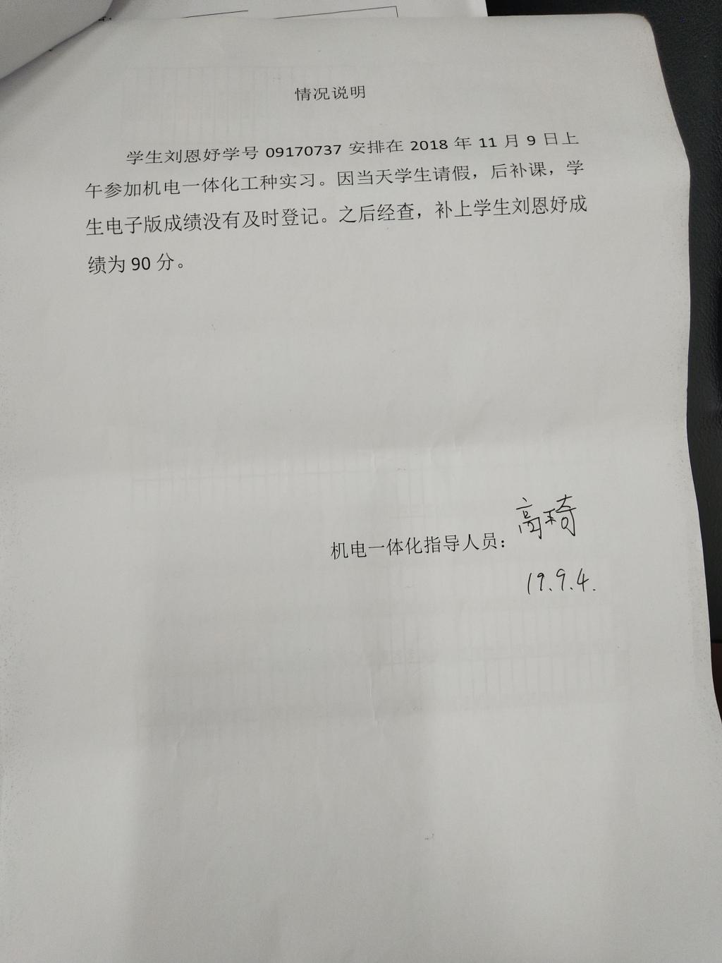 关于管理公司2017级刘恩妤同学工程训练B课程成绩更正的公示