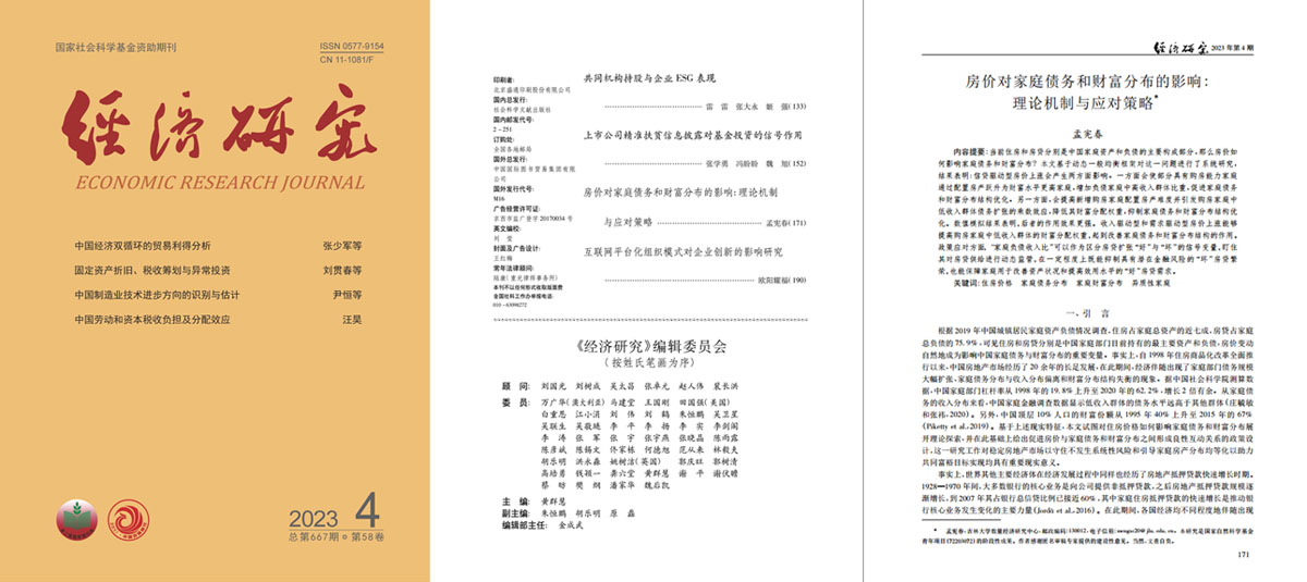 365英国上市公司孟宪春副教授在《经济研究》2023年第4期发表题为《房价对家庭债务和财富分布的影响:理论机制与应对策略》文章,这也是公司哲学社会科学资深教授张屹山研究团队的最新成果。该文基于当前住房和房贷分别是中国家庭资产和负债主要构成的现实背景,探索了房价影响家庭债务和财富分布的理论机制,并在此基础上给出促进房价与家庭债务和财富分布之间形成良性互动关系的政策设计。