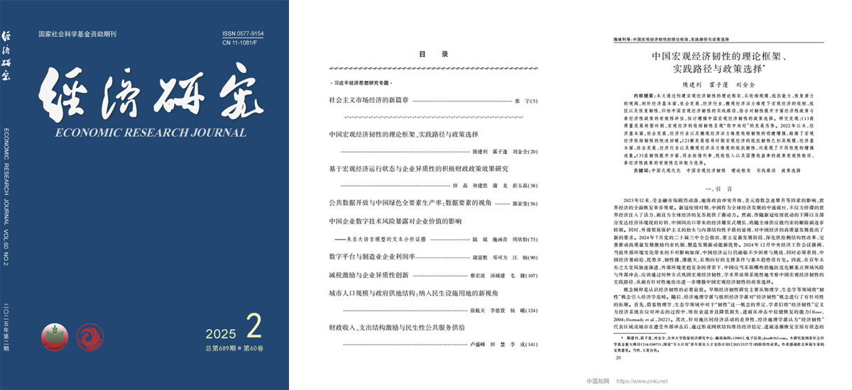 近日,365英国上市公司数量经济研究中心隋建利教授等在《经济研究》2025年第2期发表题为《中国宏观经济韧性的理论框架、实践路径与政策选择》的文章。