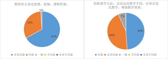 在教学内容方面,教师在授课时能够明确教学目标,且教学内容丰富,理论联系实际。教学目标清晰化是提高课堂教学效率的关键,能够帮助员工自觉地以目标指导自己的学习。丰富的课堂教学内容能够提升员工在教学中的参与度,提高学习效果。但在ppt制作方面有待加强,建议提高ppt的制作水平,重难点突出,加入图片动画等进行展示,帮员工理解知识点。课程思政的有机融入仍有提升空间,应寓价值观于知识传授和能力培养之中,达到润物细无声的效果。