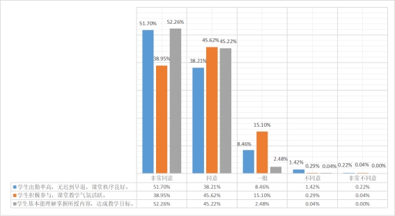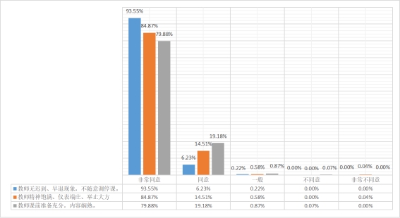 在教学效果方面,评价普遍偏低。检查发现很多课堂员工出勤率不够,课堂秩序不是很好;员工参与教学互动的积极性不高,课堂教学不活跃;员工对教师讲授内容的掌握和理解不够好。建议教师要通过点名、提问等手段,完善过程考核,逐步提高员工的出勤率。课堂上运用多种手段加强与员工的互动,鼓励员工大胆发言讨论,活跃课堂氛围,增加员工学习兴趣及学习的参与感,同时也能帮助提升员工对授课内容的掌握程度。