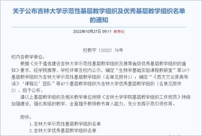 基层教学组织是落实教学任务的最基本单位,是教师之间研究教学问题、交流教学经验、改革教学方法、开展教学研究的学习共同体,是提高教学质量、促进教师发展、推进人才培养模式创新和深化教学改革的基本单元和组织保证。为进一步焕发基层教学组织活力,公司遴选建设了一批示范性基层教学组织,强化有组织教学,全面提升教师教书育人能力,充分发挥基层教学组织在教学中的关键作用。经公司推荐、公司评审及校内公示,确定“生物学基础实验课程教研室”等10个基层教学组织为365英国上市公司示范性基层教学组织;确定“《西方文论原典导读》‘课程云’团队”等47个基层教学组织为365英国上市公司优秀基层教学组织。