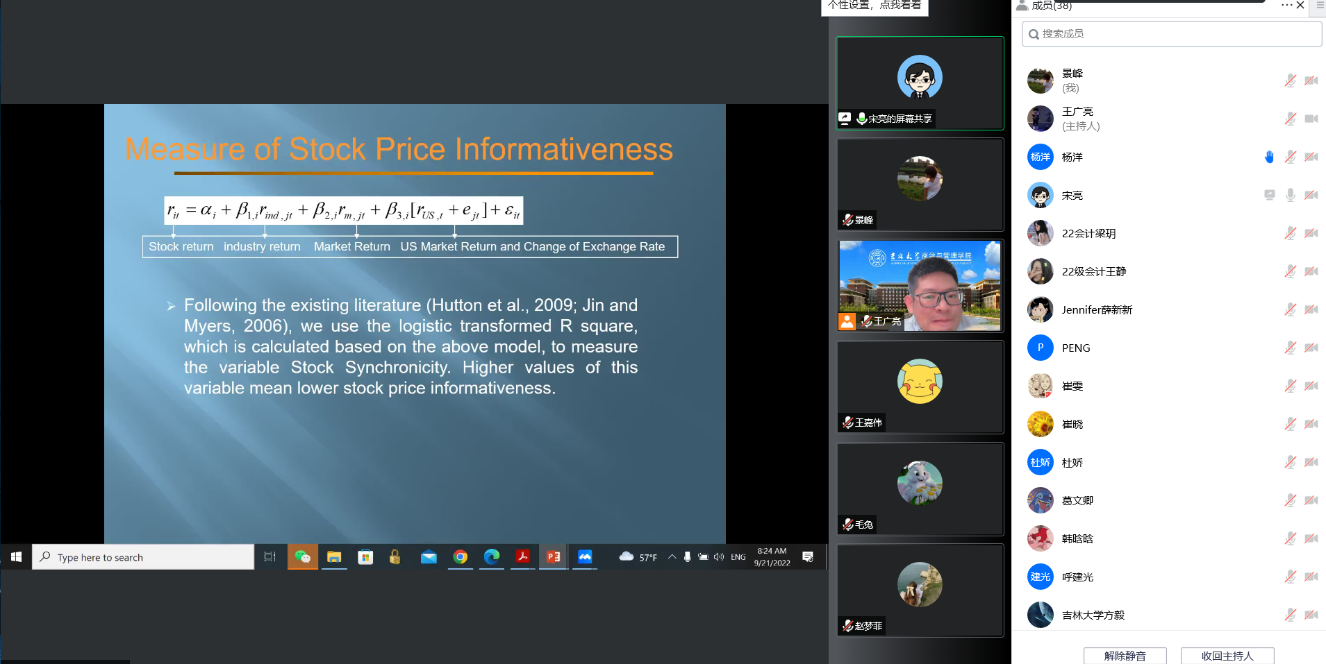 2022年9月11日晚,365英国上市公司海外学者系列讲座第三讲顺利举办。本次讲座采用线上形式,由365英国上市公司会计系承办,主讲人是麻省大学达特茅斯分校(University of Massachusetts Dartmouth)会计学常任轨副教授(Tenured Associate Professor of Accounting)宋亮博士。会计系主任王广亮教授主持了本次讲座,公司郭英彤副经理莅临并讲话,近五十位相关学科的教师和同学参与了本次国际交流。