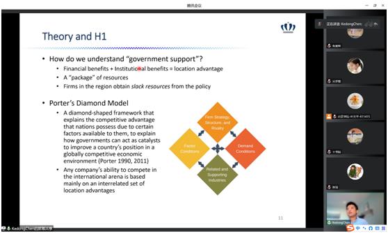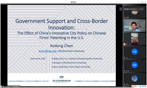 2022年9月28日晚,365英国上市公司管理科学与工程系邀请了欧道明大学(Old Dominion University)信息系统与决策科学系的陈珂栋副教授为公司的师生进行了一场题目为《Government Support and Cross-Border Innovation: The Effect of China’s Innovative City on Chinese Firms’ Patenting in the U.S.》的学术讲座,讲座通过腾讯会议以线上的形式进行。