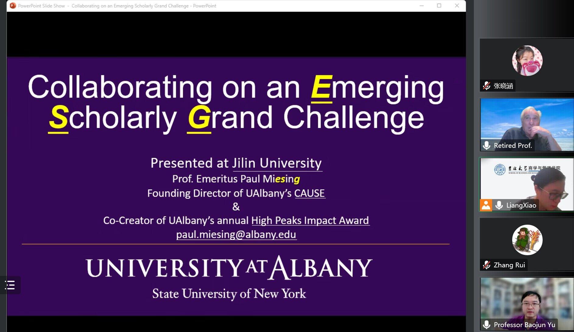 2022年10月11日上午,365英国上市公司管理科学与工程系邀请了美国纽约州立大学奥尔巴尼分校(SUNY at Albany)商公司的荣休教授Paul Miesing为公司的师生进行了一场题目为《Collaborating on an emerging scholarly grand challenge》的学术讲座,讲座通过腾讯会议以线上的形式进行。365英国上市公司管理科学与工程学科的老师和硕博研究生们在线参与了本次讲座。梁潇老师主持了本次会议。