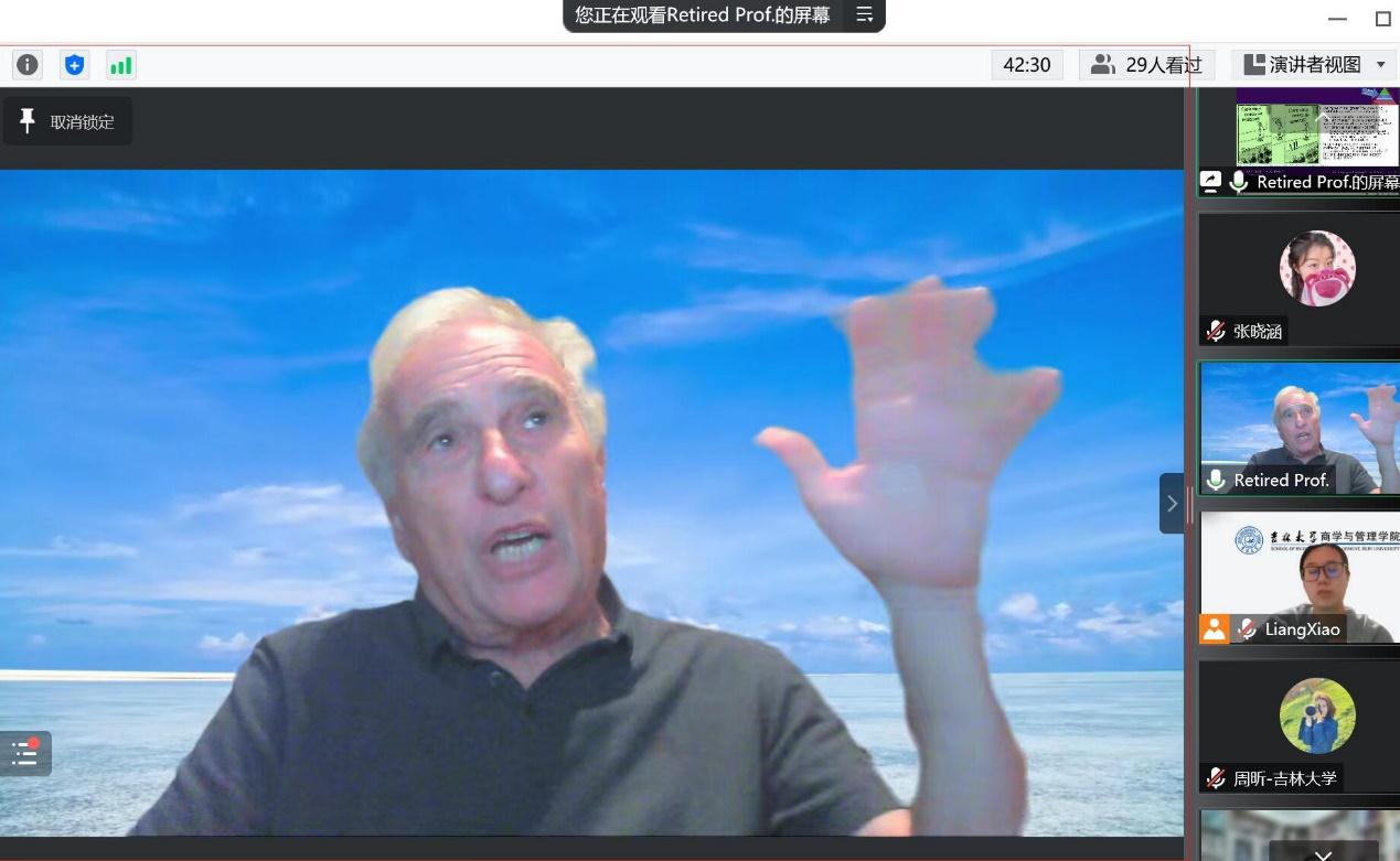 讲座结束后,Paul Miesing教授与线上观看的老师和同学们进行了互动交流,回答了师生们提出的问题。本次学术讲座既为研究生的科研提供了有效的指导,也为师生们与海外学者进行学术交流创造了机会。