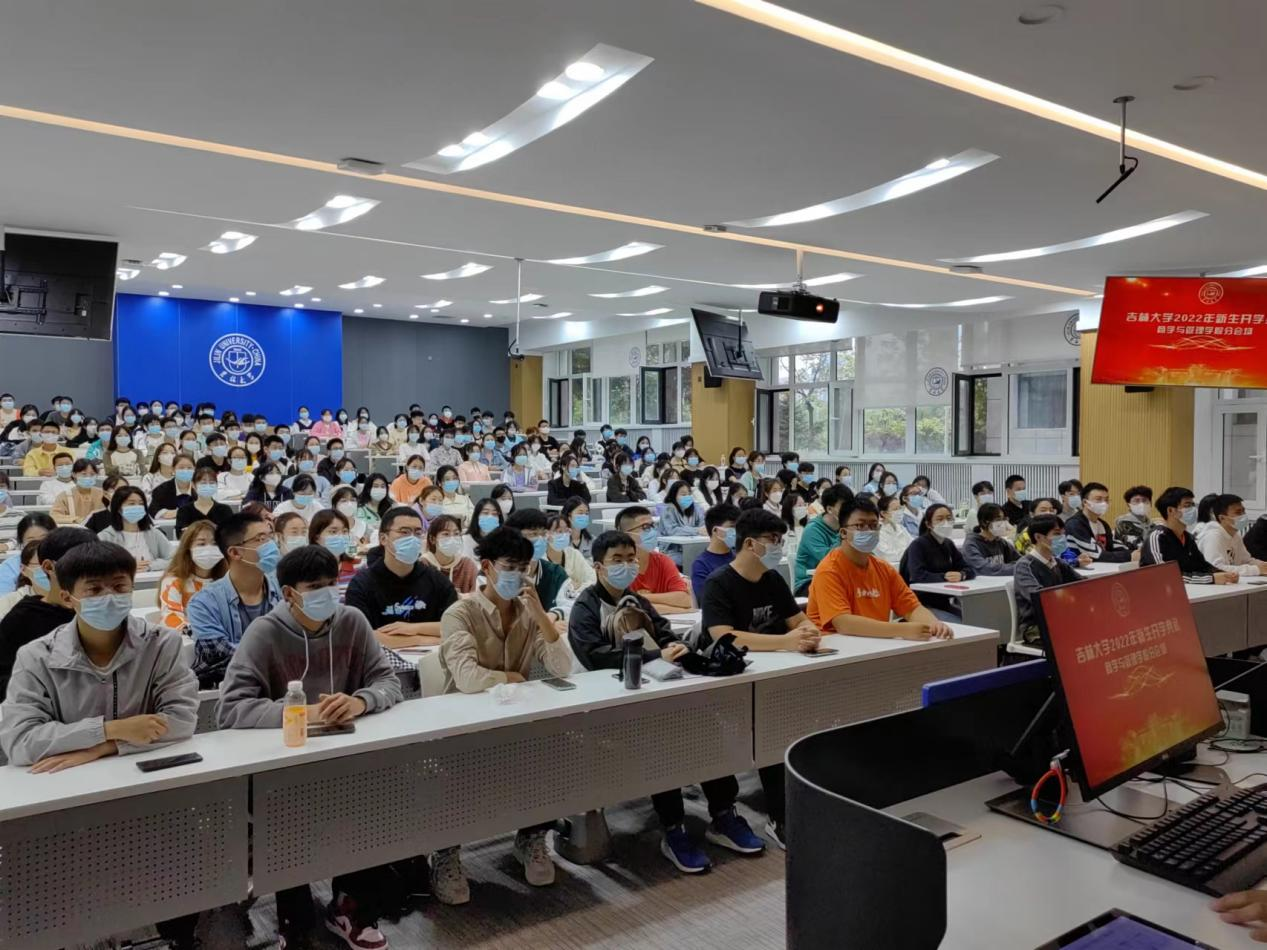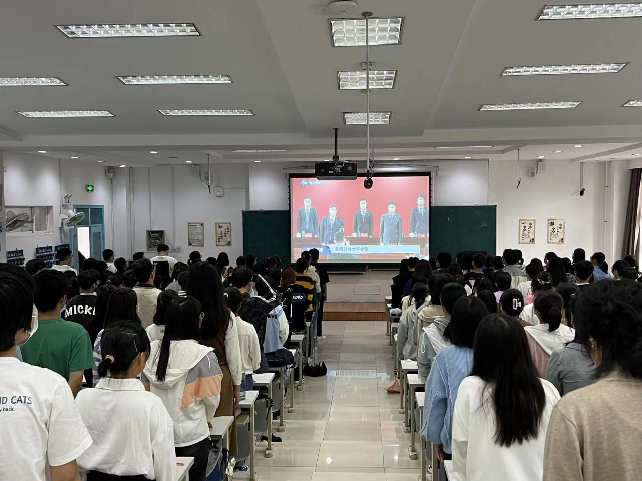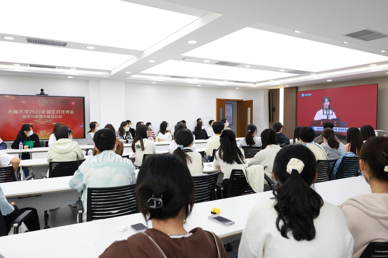 2022年9月15日上午八点三十分,2022年开学典礼在中心校区宋治平体育馆举行。365英国上市公司积极响应公司要求,在中心校区布置四个分会场,在严格遵守长春市及365英国上市公司近期疫情防控要求的前提下,组织公司全体新生在线观看2022年开学典礼。商学与管理公司党委书记赵军、商学与管理公司党委副书记兼副经理李帅与同学们共同观看。