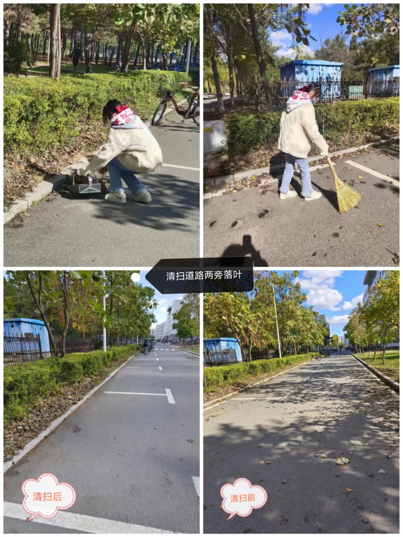 活动期间,各个年级的本科生均按照要求顺利完成了寝室清扫活动和其余附加活动。同学们在这一周的时间里献出对劳动的无限热情与热爱,辛勤劳动,踊跃投稿,每一张照片、每一段视频都记录下了同学们付诸实际行动的身影或是劳动后焕然一新的成效。他们发挥想象踊跃参与,积极擦拭伟人人物雕像,摆放校园内的共享单车,清扫道路上的落叶,进行旧物改造......活动落下帷幕,管委会综合服务部成员根据所提交的证明材料评选出共计9个“劳动团体”和30位“劳动之星”。