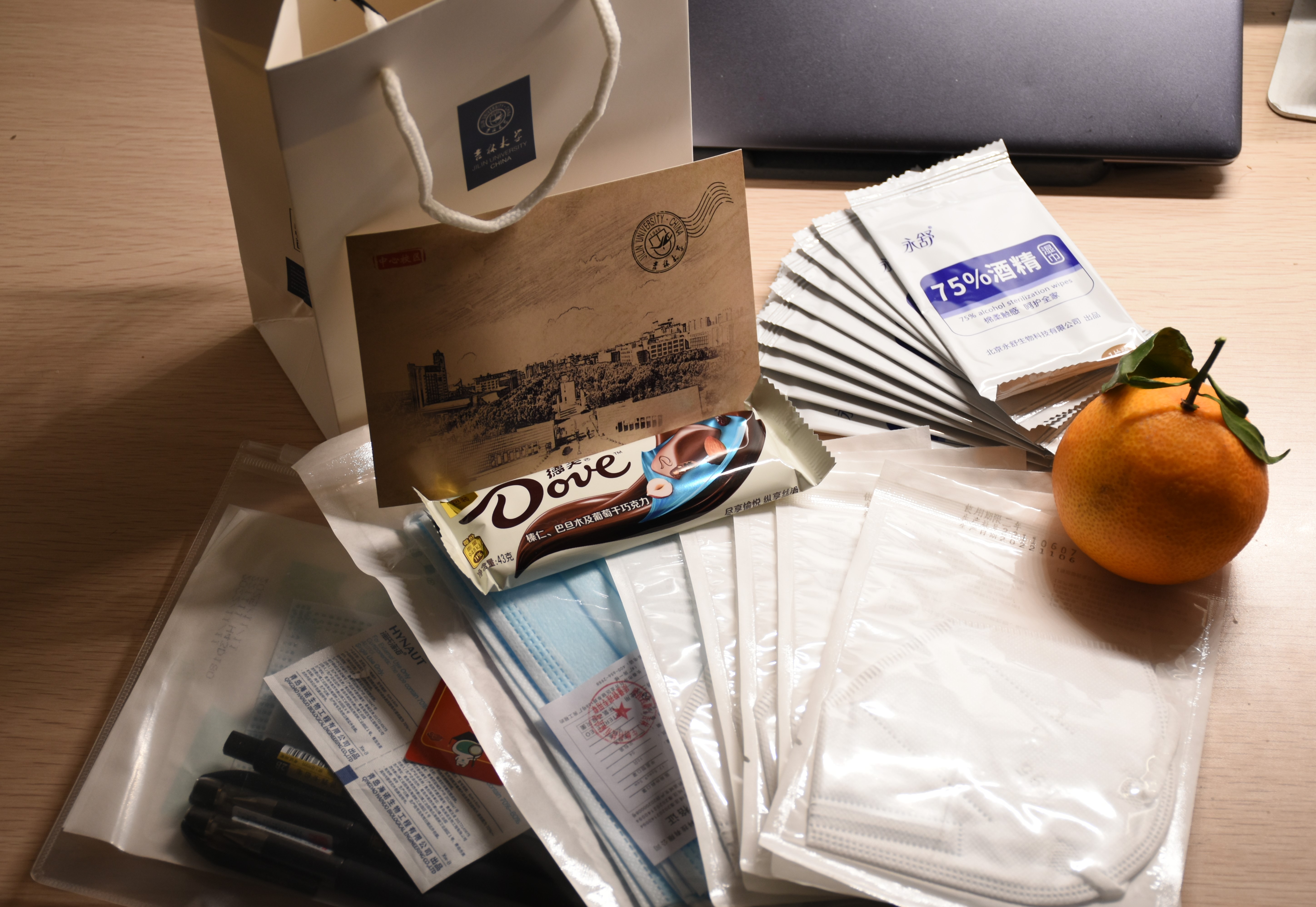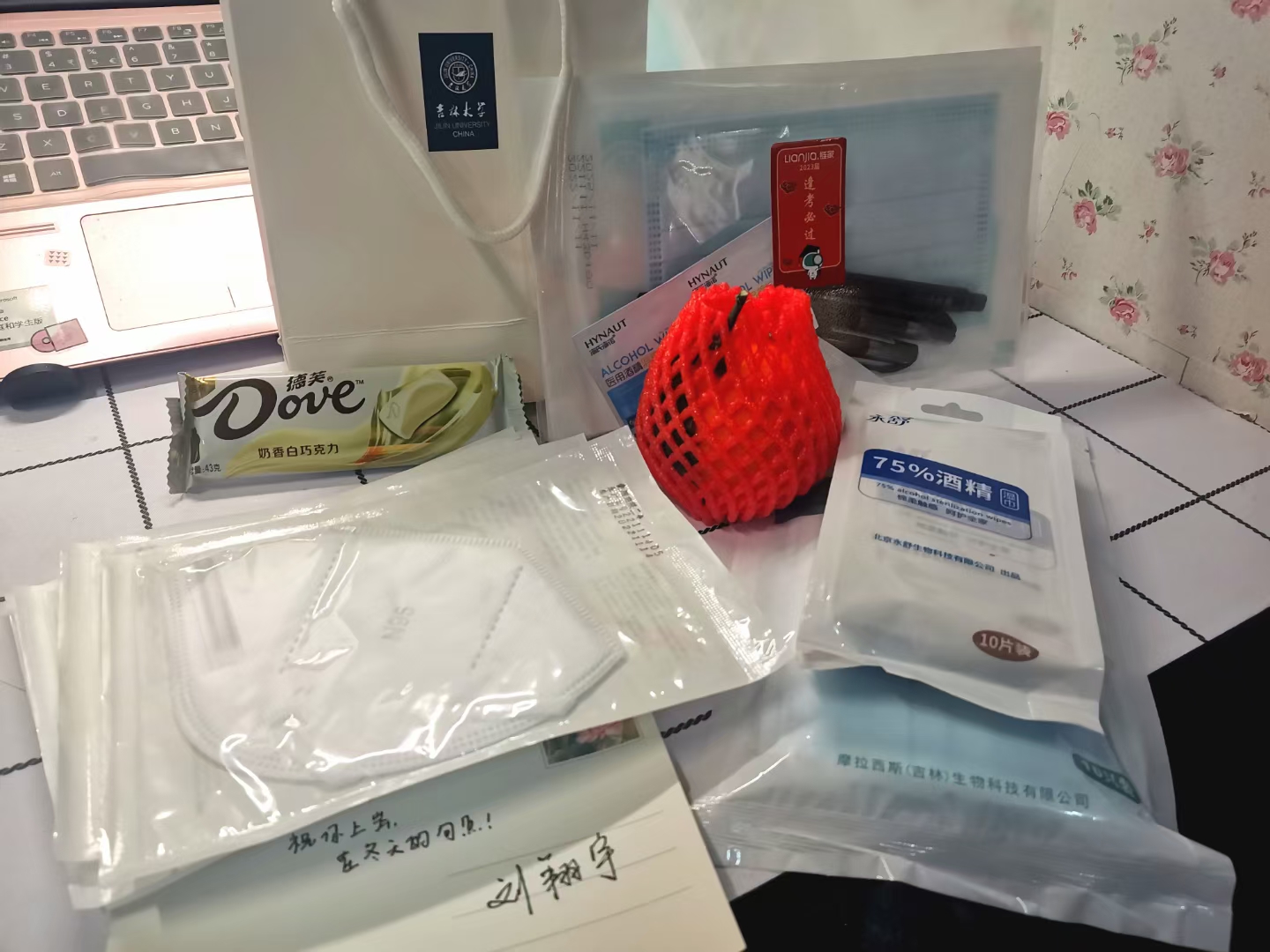 12月16日上午,毕业生辅导员陈卓、刘翔宇老师为同学们精心准备了“考研祝福加油袋”并亲手送到每一位学子手中。袋子里有寓意着“巧克难题”的巧克力,有代表着“心想事橙”的橙子,还有特殊时期的防疫包以及精美的文具。每一个加油袋中都附有老师们亲手所写的明信片寄语,寄托着老师对于全体考研学子的殷切嘱托与美好祝愿。收到“考研祝福加油袋”的同学们都表示十分开心,真切的感受到了公司的温情祝福,并表示将带着这份祝福奔赴考场。