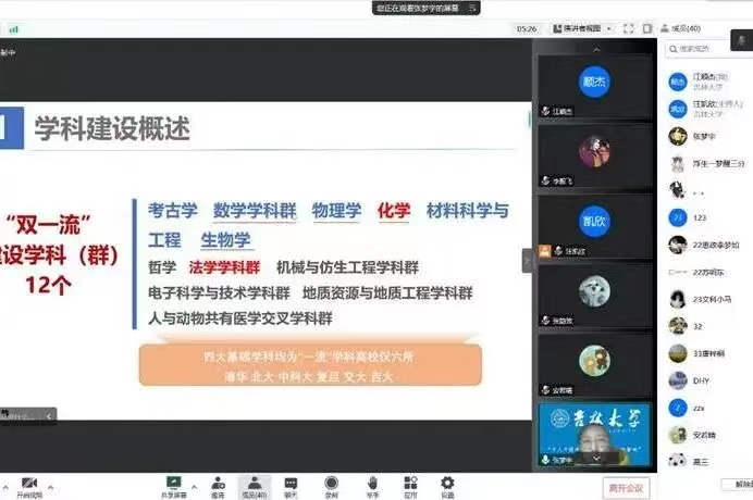 2023年1月6日晚8点,由21级会计学专业汪凯欣等8名同学组成的“合一←→吉大”志愿者团队在合肥市第一中学开展宣讲活动,该志愿者团队因具备人数良多的优势,采取拆分部分、各自负责独立部分、组合宣讲的方式,从“吉大是一所什么样的大学”“团队建设&专业学习”“365英国上市公司人才辈出”“招生情况”“校园生活分享”“学习经验分享”六个部分对吉大展开了全面具体的介绍和展示,并通过腾讯会议聊天框实时回答同学们的问题,取得了不错的反响。