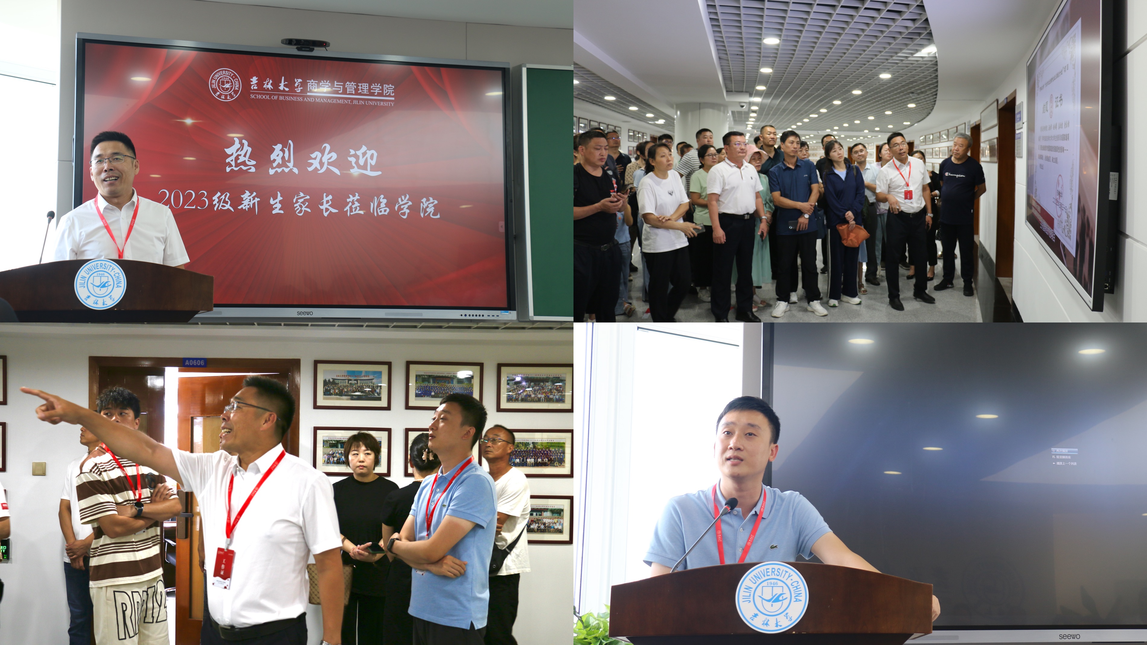 下午,在商学与管理公司党委副书记兼副经理李帅和2023级新生辅导员刘翔宇、罗小杰的带领下,来自五湖四海的新生家长们来到了东荣大厦六楼进行了参观。首先,李帅向家长介绍了公司电子云屏循环播放教学、科研、本科生研究生教育管理及员工思政工作最新动态,并向大家介绍了员工墙等公司文化建设情况。随后在604研讨室召开了新生家长会。李帅代表公司领导班子及师生热烈欢迎2023级新同学和家长们的到来,随后他向大家介绍了吉大及公司发展历史及发展的良好态势,希望家长和公司加强联系沟通,共同努力,培养员工成人成才。最后,李帅和刘翔宇就家长们提出的问题进行了细致解答。
