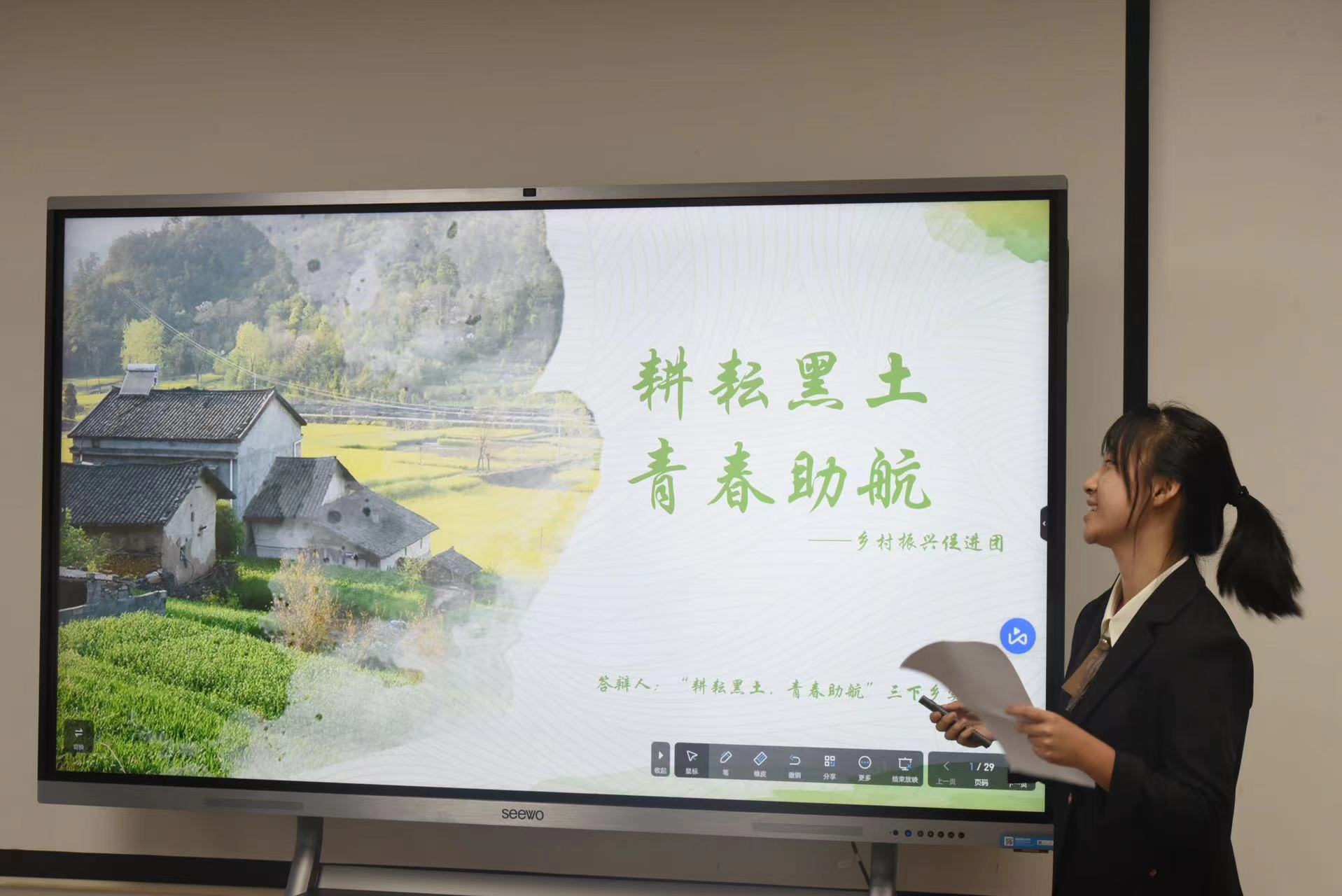 本次活动以答辩的形式开展,共有15支暑期实践队伍参加答辩,每支队伍依次上台通过ppt展示小组实践主题,内容,成果和心得体会。循声问道实践队推广普通话,共筑中国梦;跟着党走就队寻访岁月记忆,感受时代广博;“护苗行动”小分队,促进乡村振兴,关注留守儿童...15支队伍走出校门,走向社会,受教育、长才干、作贡献。带着问题调研、带着思考实践,用脚步丈量祖国大地,用眼睛发现中国精神,用耳朵倾听人民呼声,用内心感应时代脉搏,努力将知识积累,社会观察等成果转化为实实在在的建设性意见和举措。他们走出校门,走向社会,受教育、长才干、作贡献。